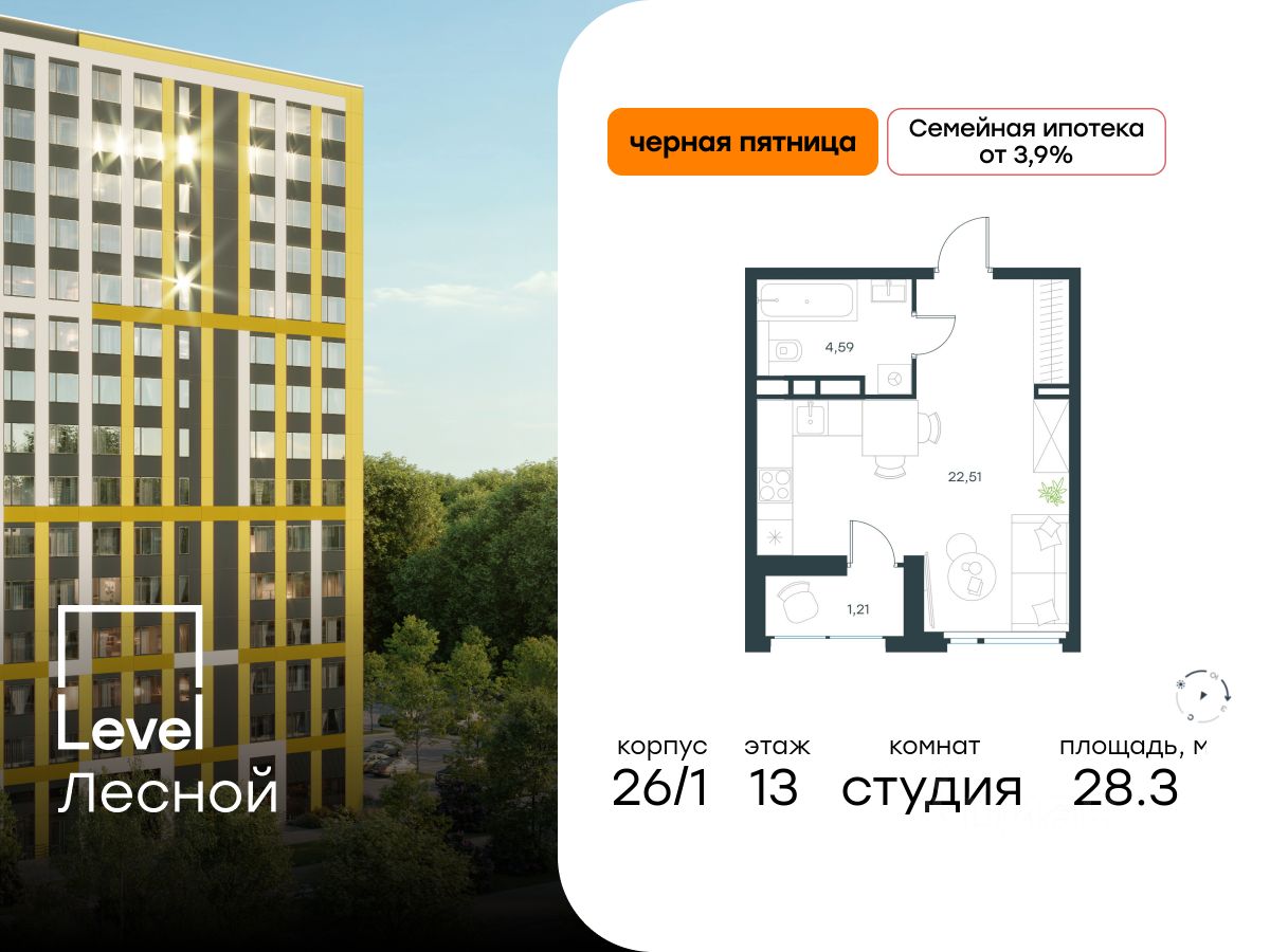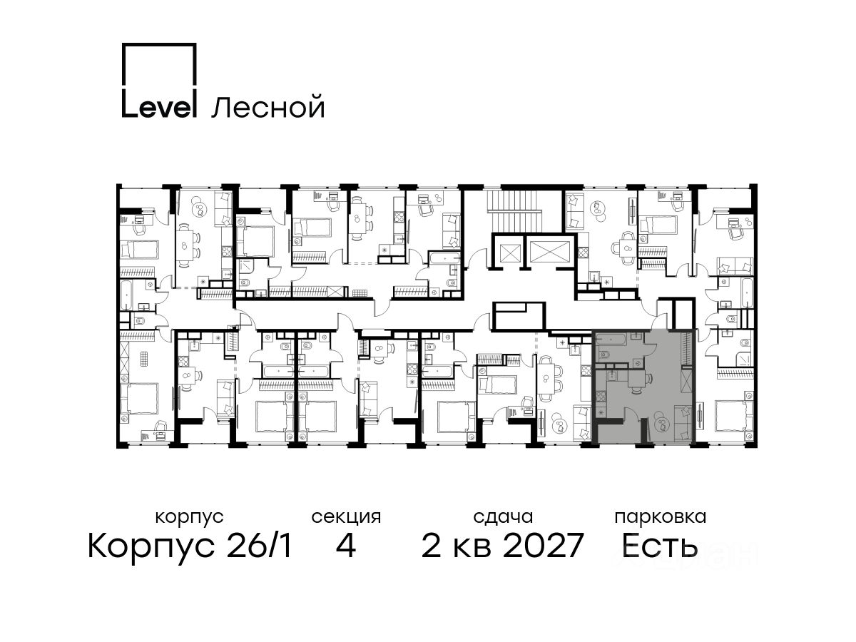 В районе, утопающем в густой зелени лесов, многочисленных парков и скверов, продаётся студия площадью 28.30 кв.м с отделкой white box. Квартира расположена на 13 этаже в жилом комплексе комфорт-класса Level Лесной (компания Level Group/Левел групп).