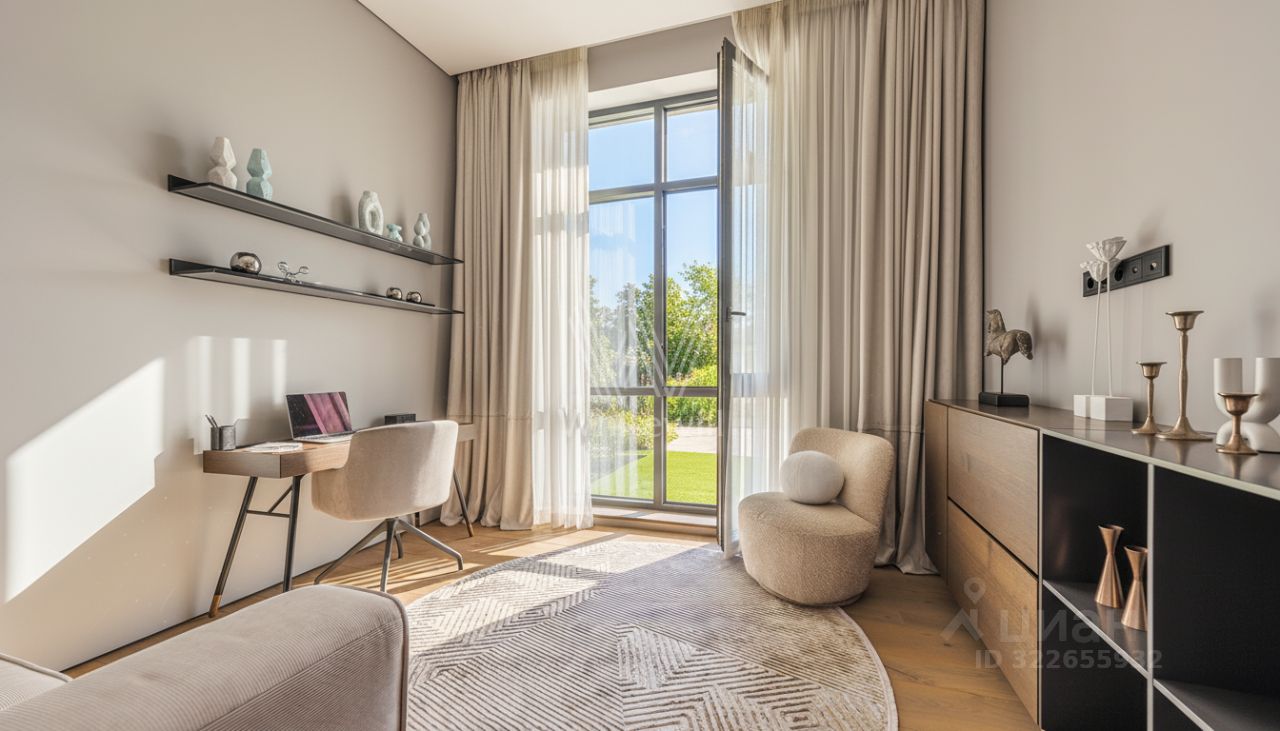 Технические особенности: приточно-вытяжная вентиляция, высокие потолки и дверные проемы, создающие ощущение простора, - панорамное остекление, - у каждой спальни предусмотрен балкон, полностью меблированный интерьер.