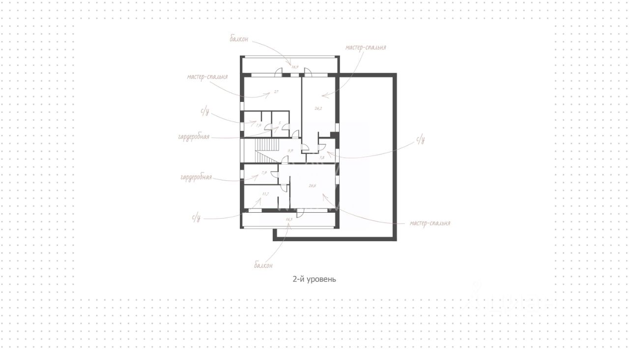 На втором этаже — три приватные спальни, каждая со своим санузлом и гардеробной.
