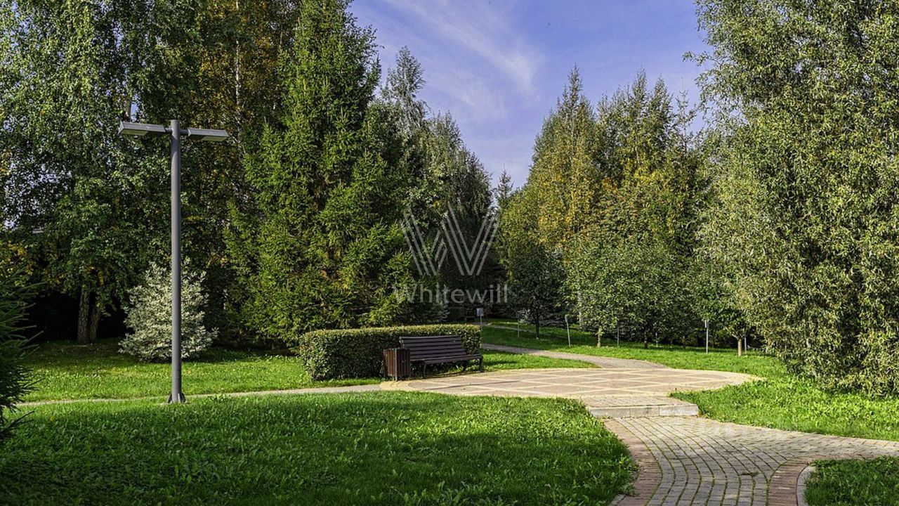 Участок — территория комфорта и уединения: -По периметру высажены туи, сохранены лесные деревья. -Ландшафт оборудован автополивом и дренажом. -Уличная подсветка и декоративная инсталляция формируют атмосферу уюта.