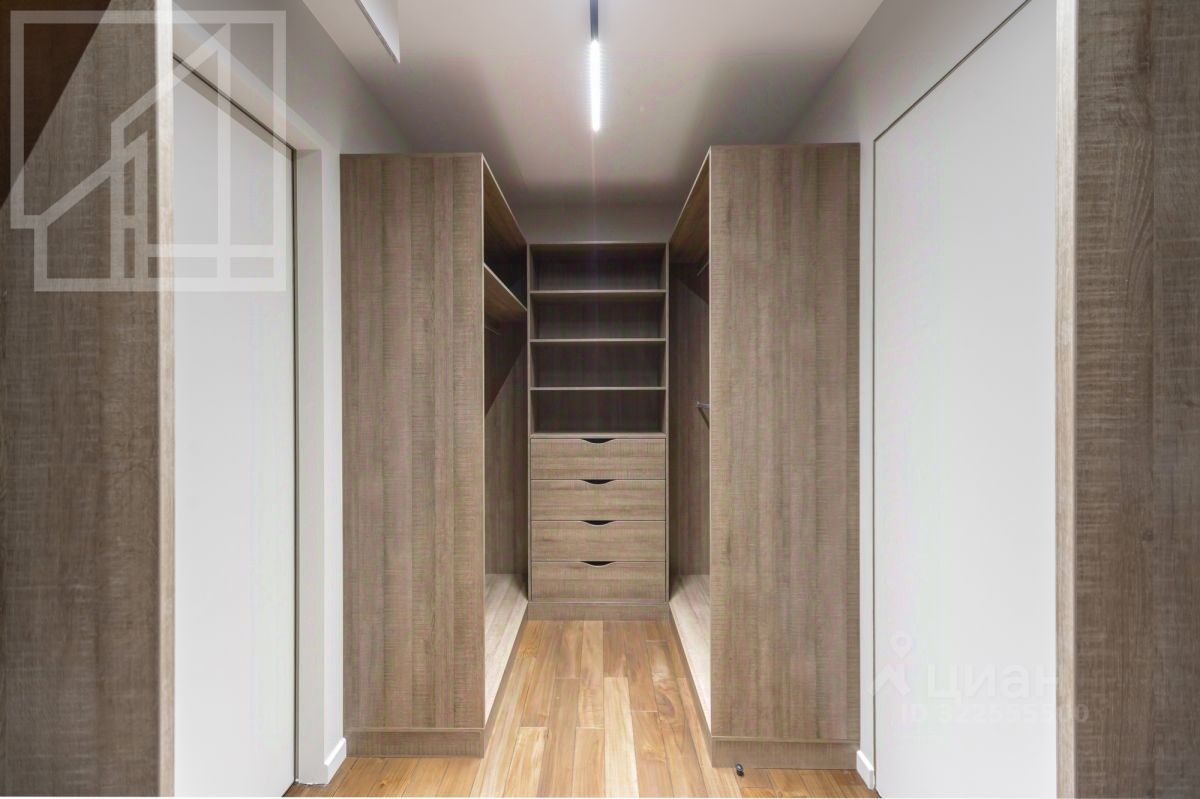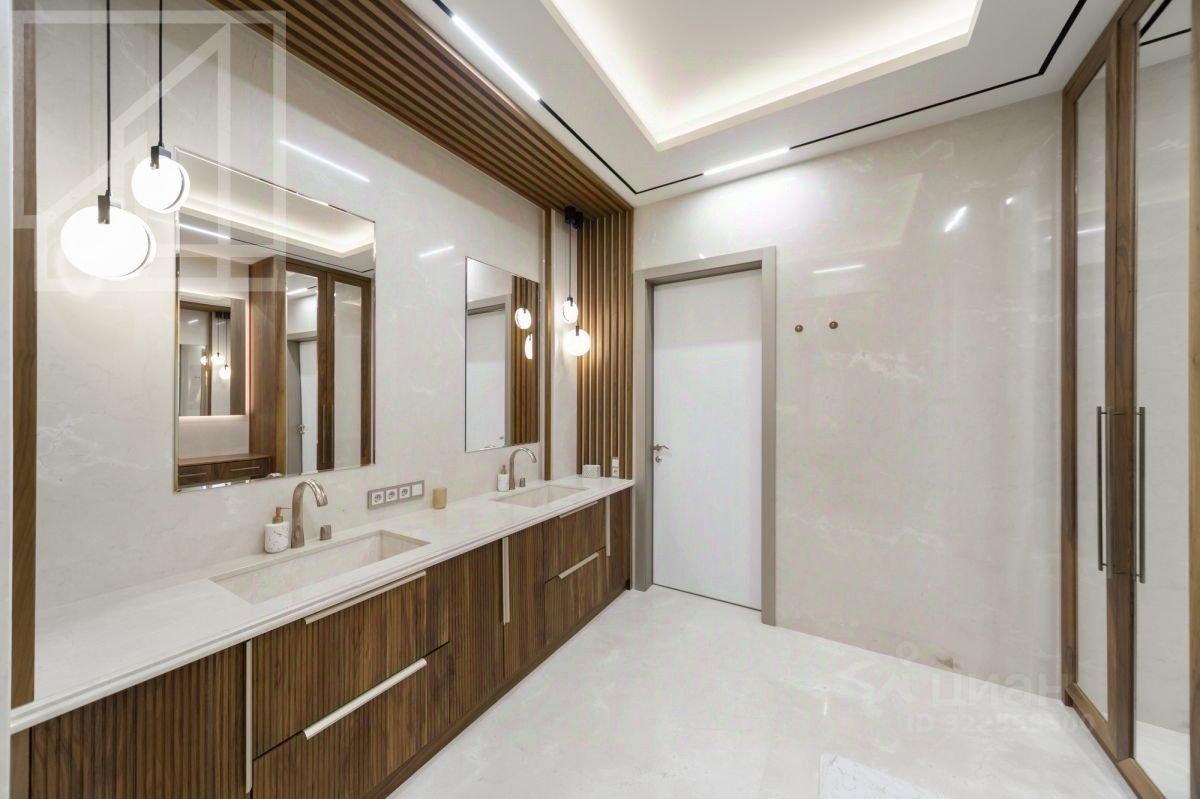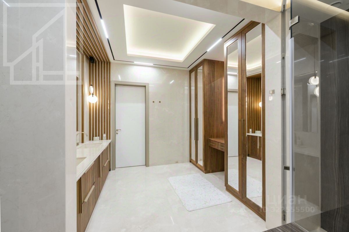 Планировка квартиры: 1-й этаж: холл, с/у, гардеробная, гостиная с камином, кухня, столовая, кабинет, спальня с выходом на участок с собственной ванной комнатой, постирочная, подсобное помещение, 2-й этаж: гостиная с лоджией, мастер- спальня с гардеробной и ванной комнатой, две спальни с гардеробными, с выходом на балкон и с/у.