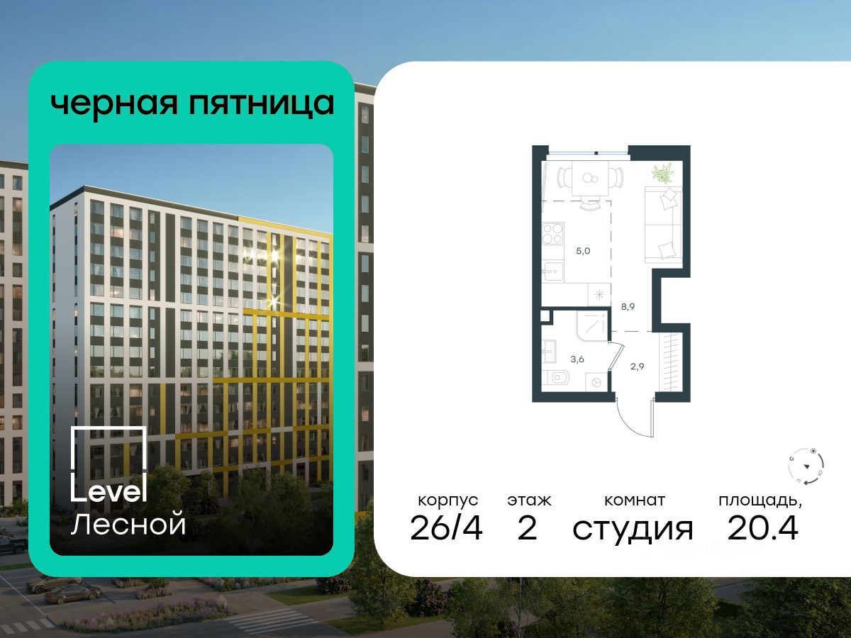В районе, утопающем в густой зелени лесов, многочисленных парков и скверов, продаётся студия площадью 20.40 кв.м с отделкой white box. Квартира расположена на 2 этаже в жилом комплексе комфорт-класса Level Лесной (компания Level Group/Левел групп).