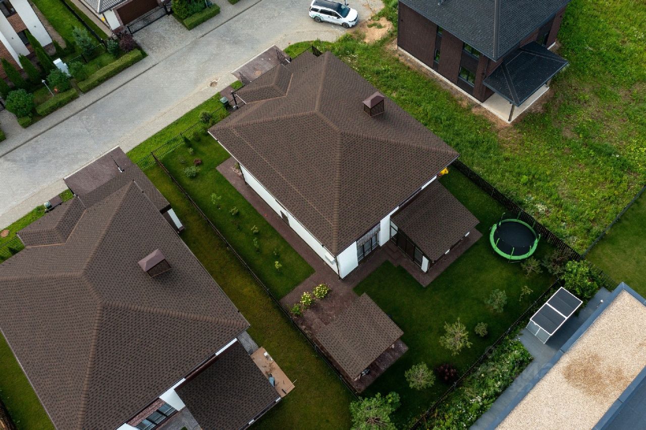 Стены газобетонные блоки D400 Фундамент монолитная плита Кровля вальмовая, гибкая черепица Двери с бесшумной итальянской фурнитурой