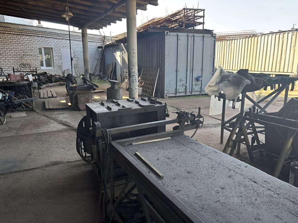 Навес, сварочные столы, покрасочная комната, сварочный аппарат, компрессор. Закрытая территория. Электричество 50 квт от собственника.