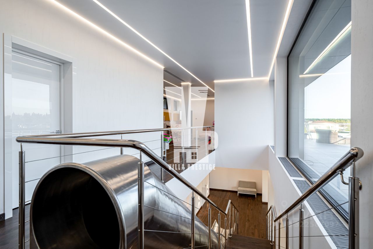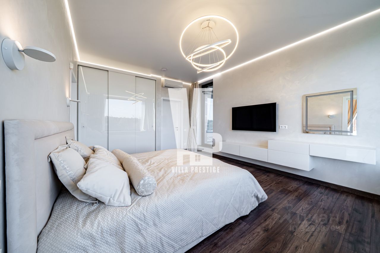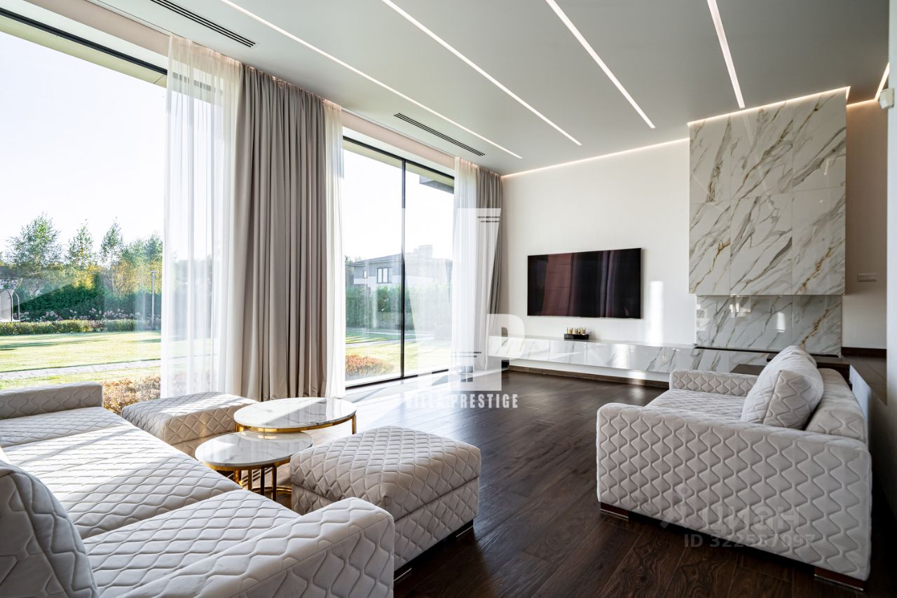 Коттедж оснащен системой видео наблюдения, охранная система, дистанционные системы управления: котлами, входом в дом, автоматический полив участка. Полы в доме подогреваемые водяные, уличные террасы подогреваемые водяные. Канальная сплит-система