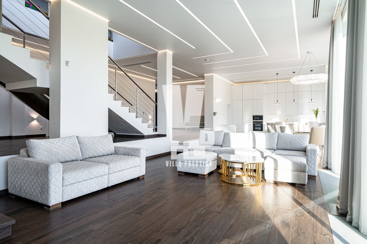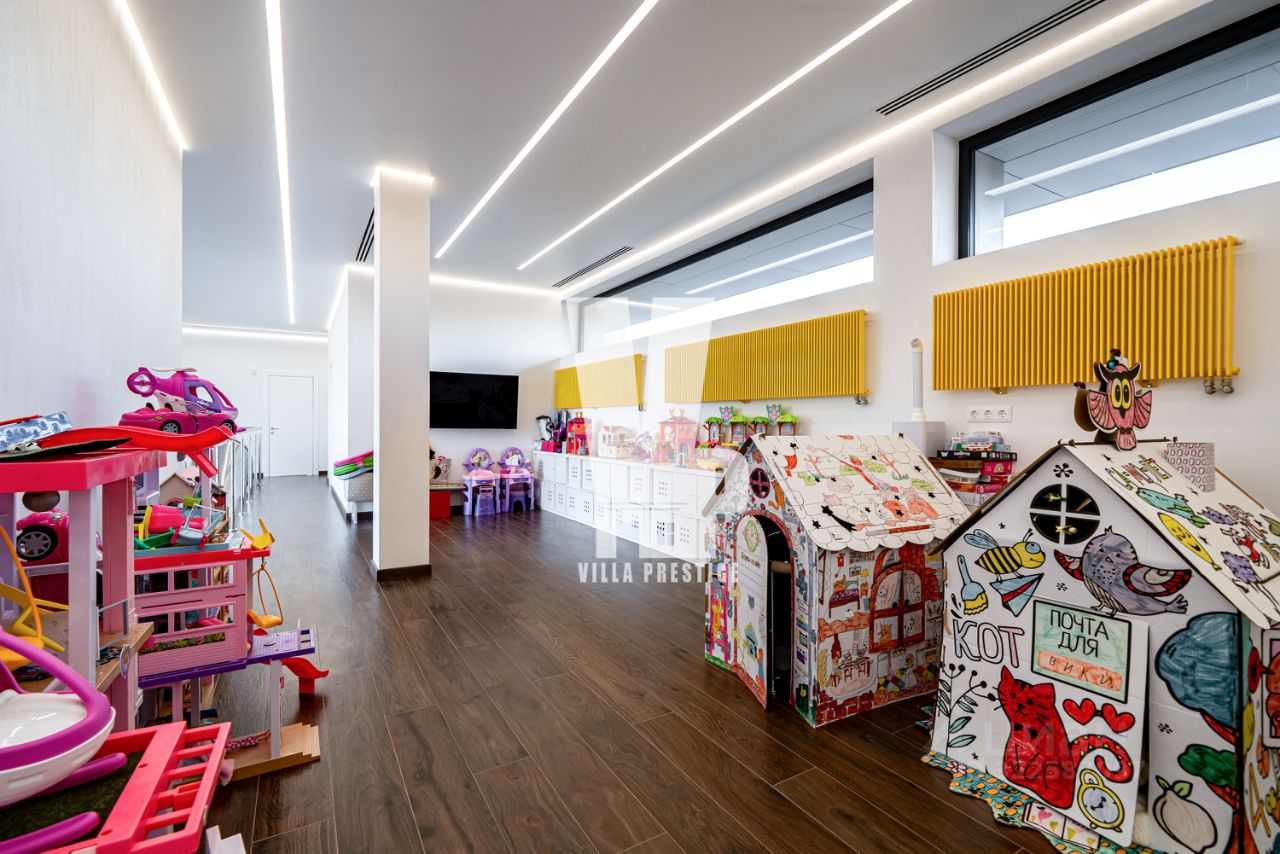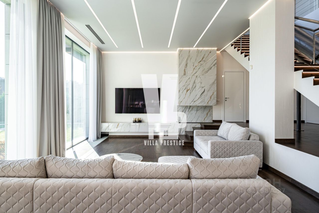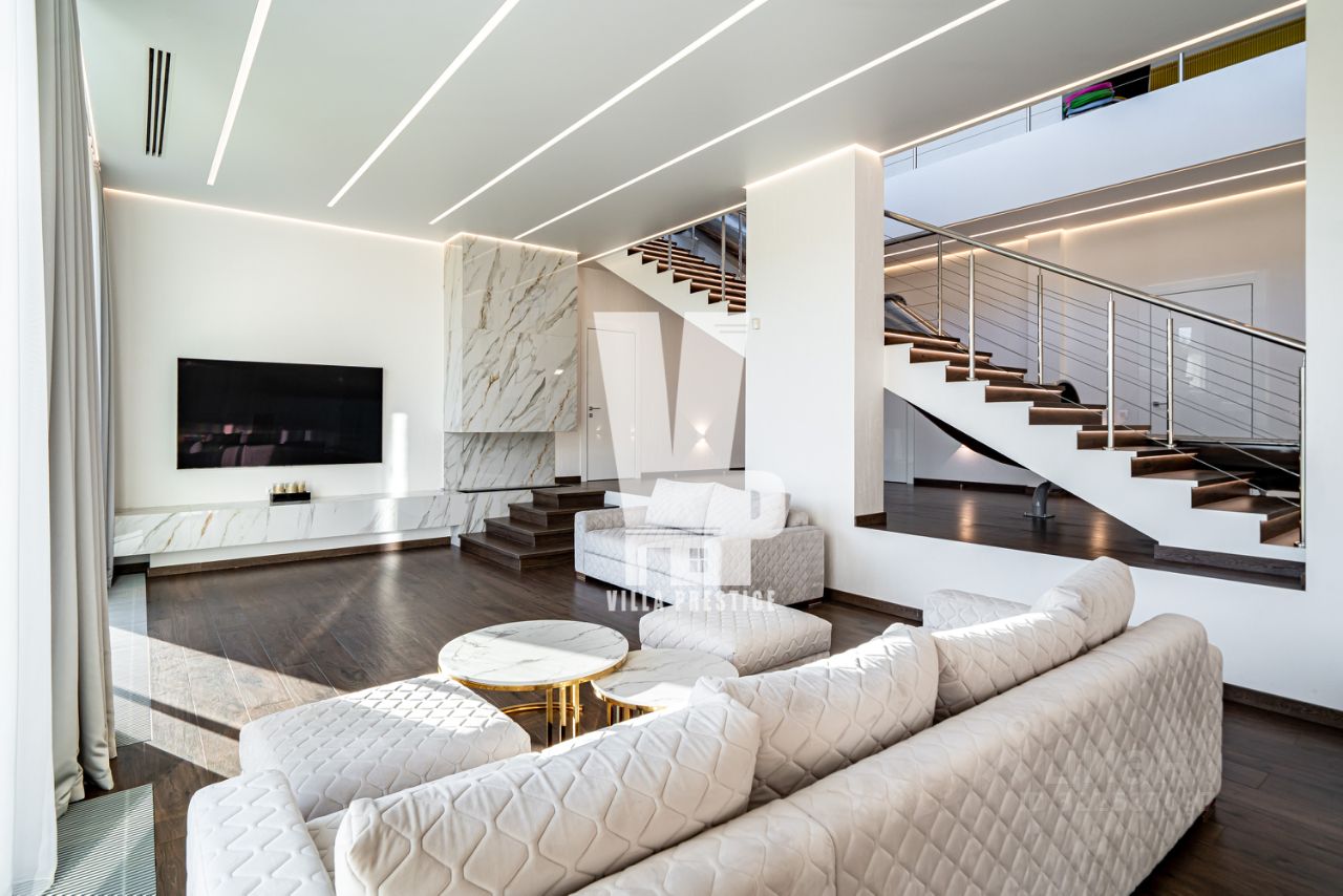 Коттедж оснащен системой видео наблюдения, охранная система, дистанционные системы управления: котлами, входом в дом, автоматический полив участка. Полы в доме подогреваемые водяные, уличные террасы подогреваемые водяные. Канальная сплит-система
