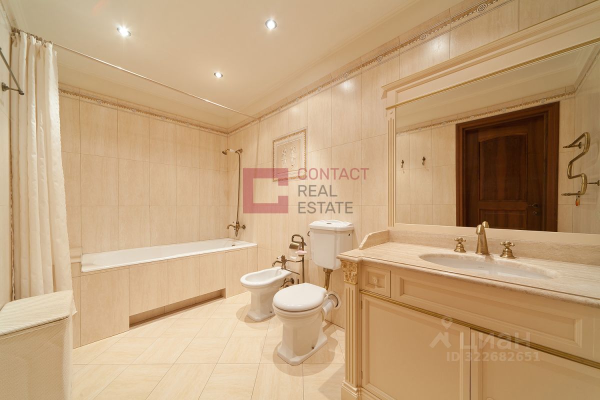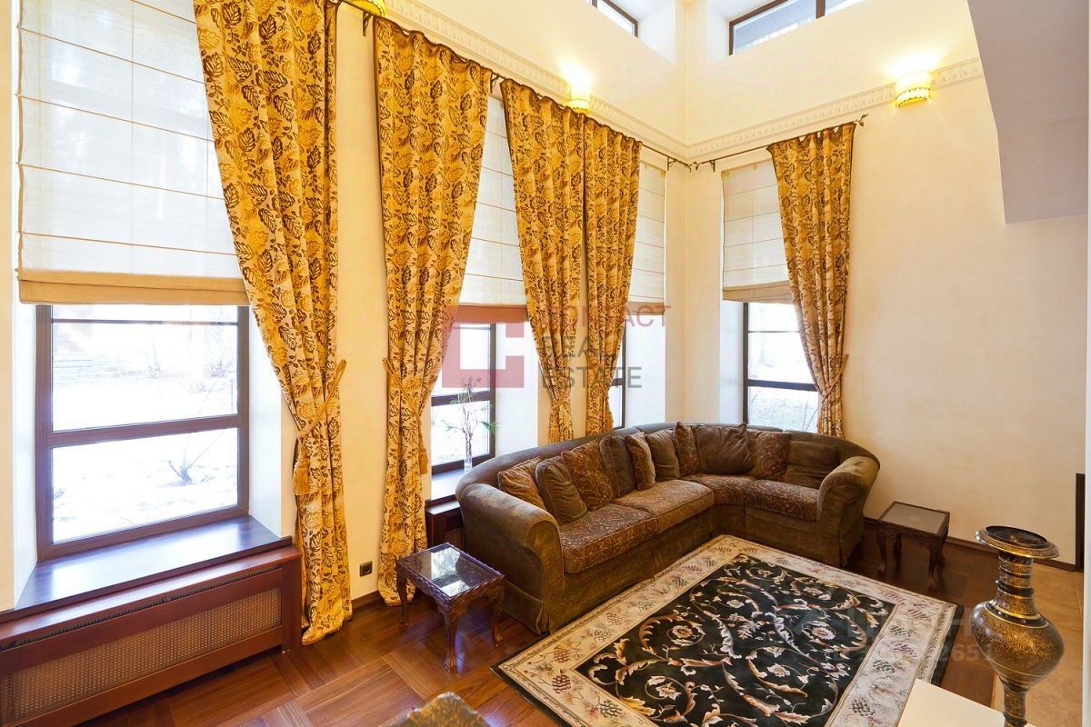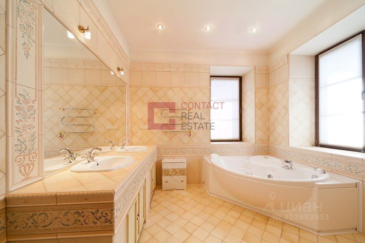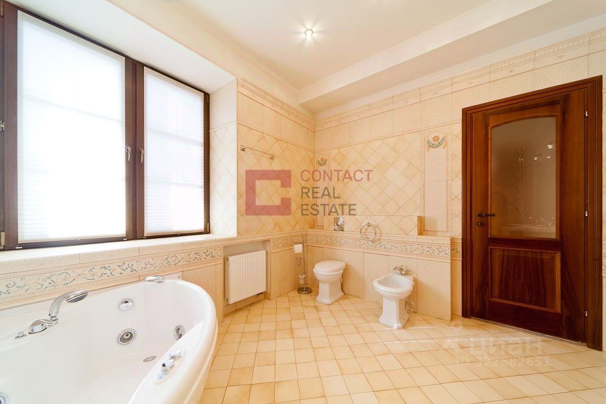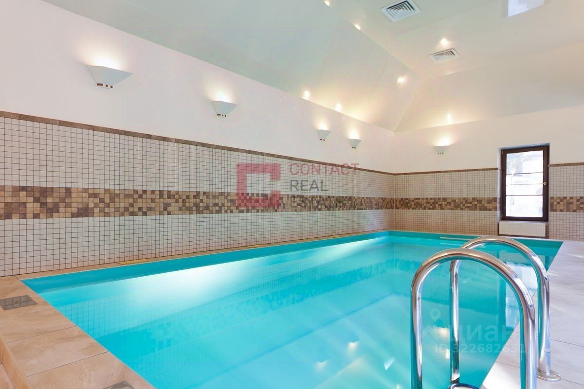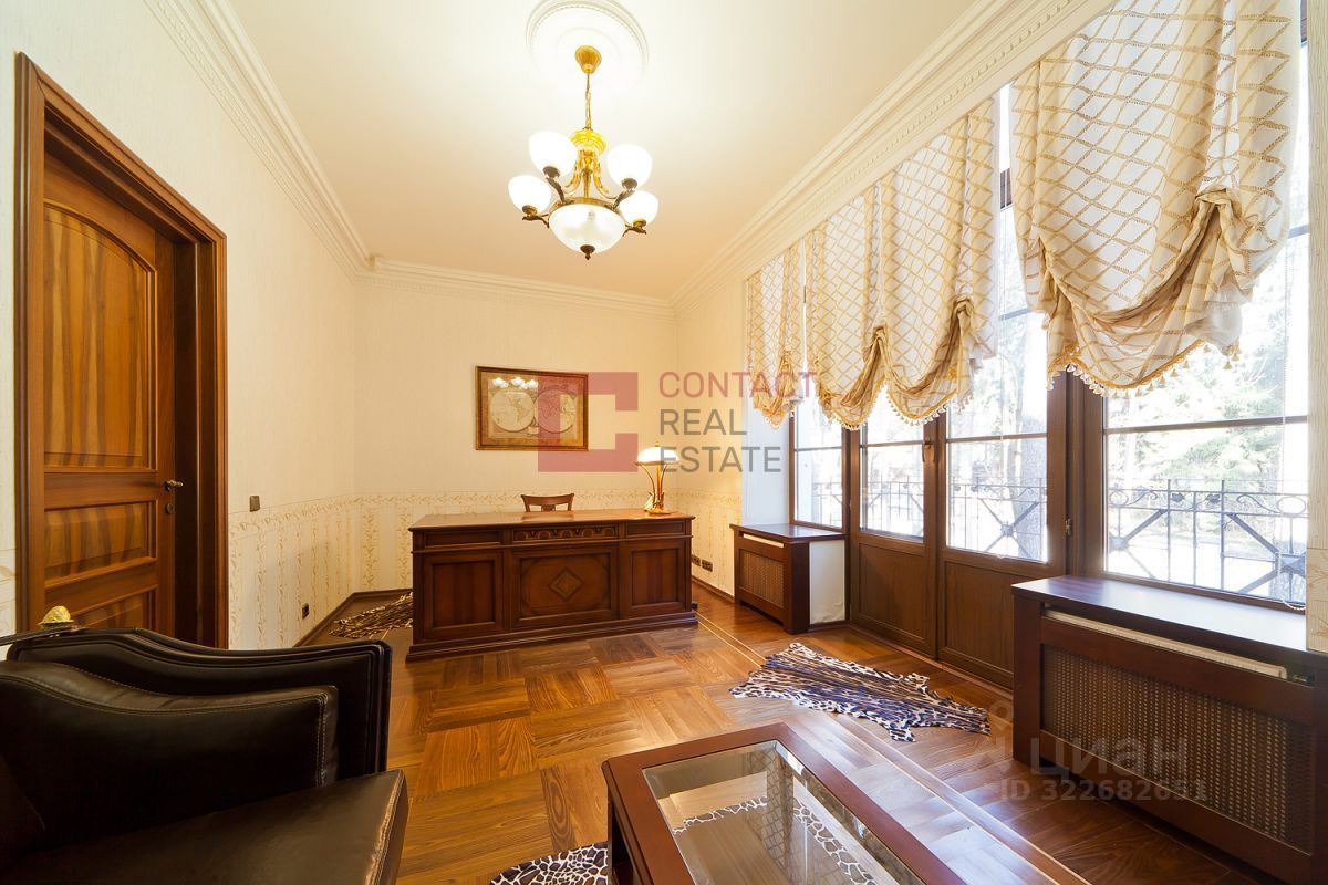 ID 542228. КП Санаторий Барвиха/Сады Майендорф. Коттедж с авторским дизайном интерьера в лучшем поселке на Рублевке. Грамотная планировка: 4 спальни, кабинет, гостиная, столовая, каминный зал, сауна, бильярд, спортивный зал, отдельный вход в блок для персонала (2 комнаты), изолированный от хозяйской части. Бассейн находится в отдельном доме. Участок 30 соток. Отдельно на участке расположены спортивный павильон (бассейн, сауна, санузел) и детская площадка.