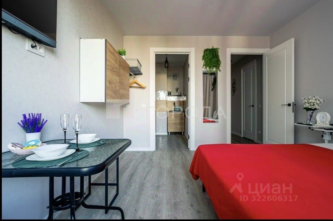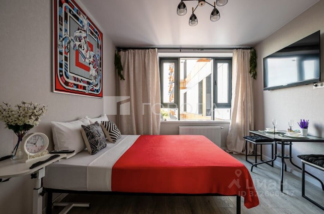 Общая площадь квартиры — 25 кв. м, из которых 14 кв. м — жилая площадь. Высота потолков — 2,5 м. В апартаменте отличный качественный ремонт от застройщика, вся фурнитура и сантехника производства Италия, керамогранит в санузле, вся мебель и техника новые, и остаются после продажи.