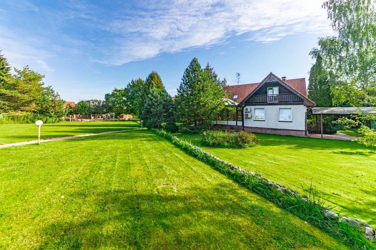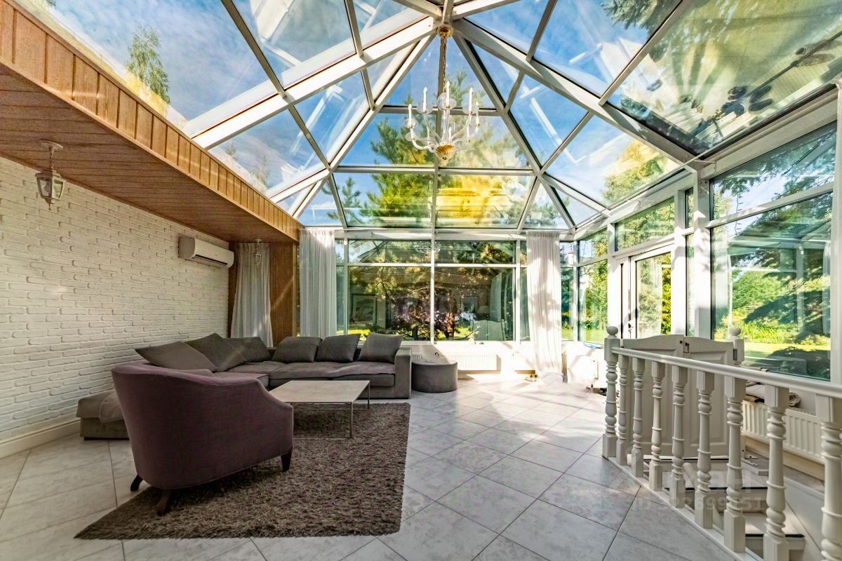 На участке расположены 5 строений: - основной дом, - гостевой дом, - баня, - конюшня, - гараж на две машины.