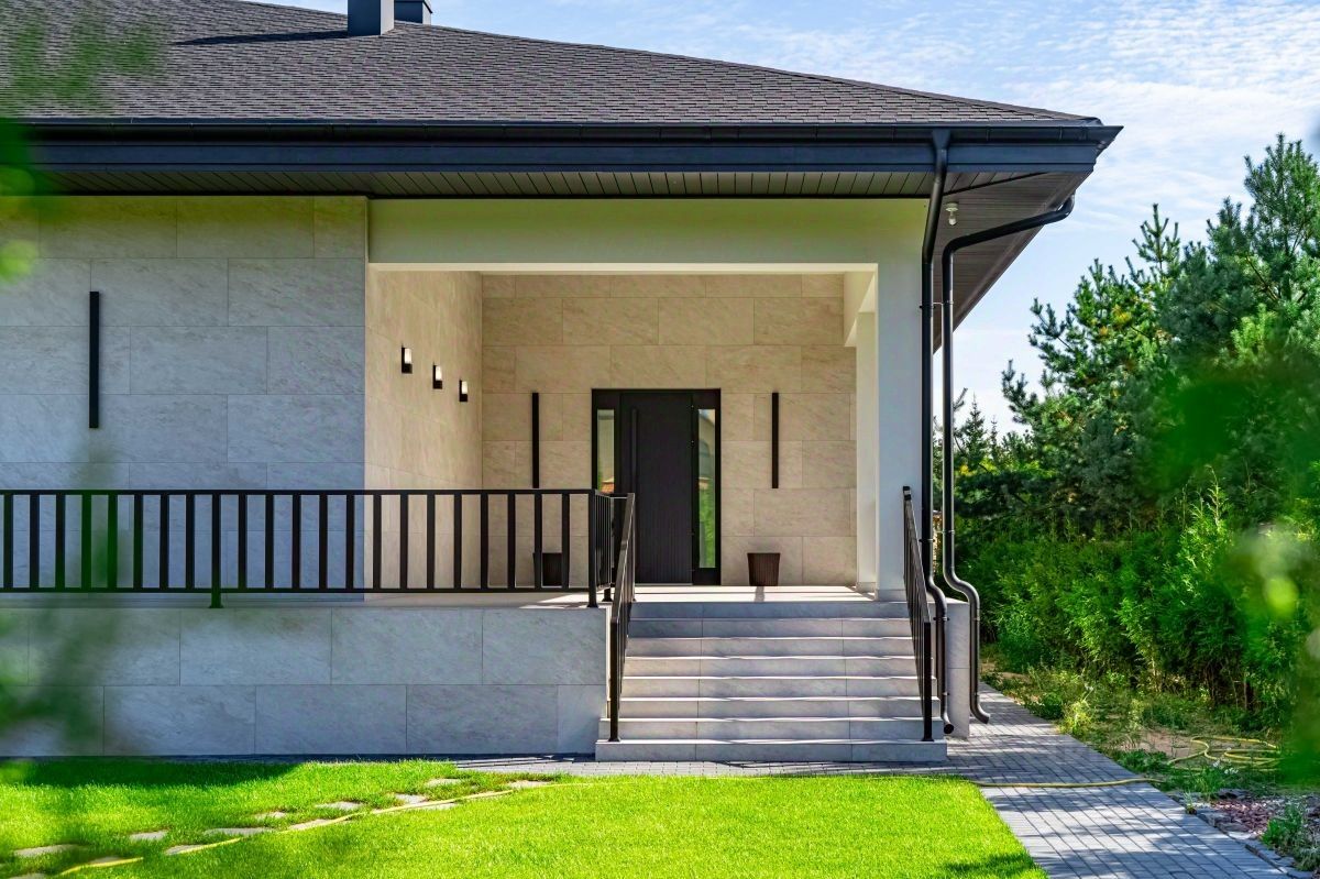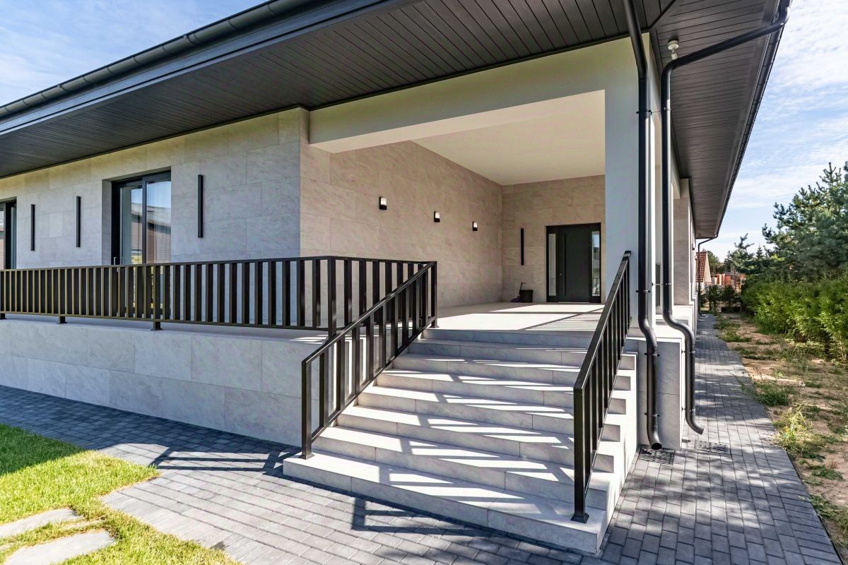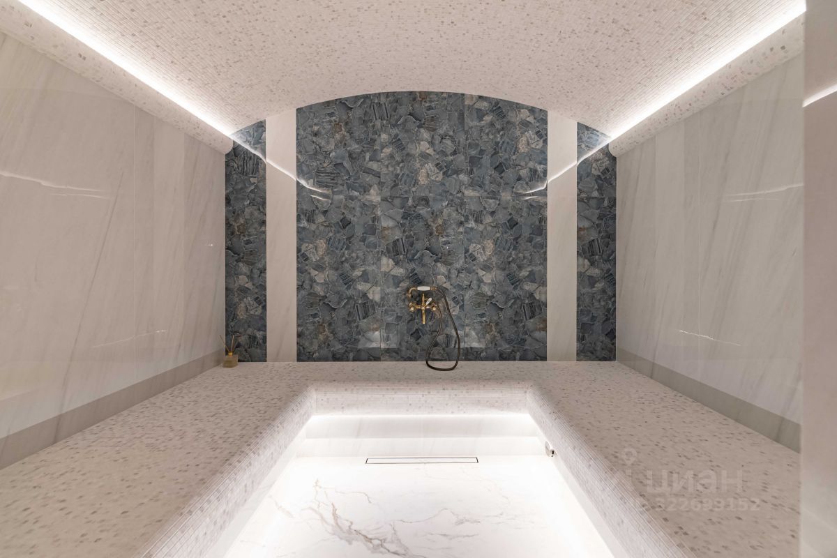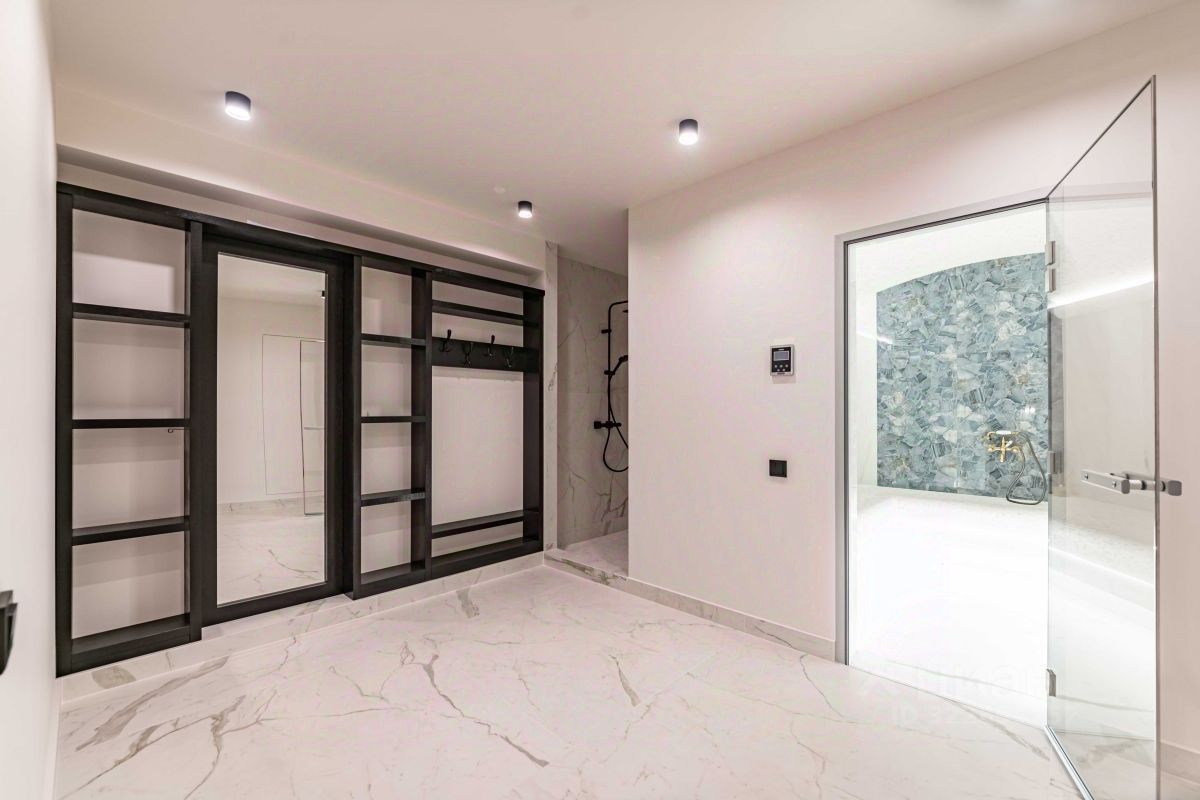 В цокольной части находятся спортивная и спа-зоны, сезонные гардеробные, кладовые, 2 спальни, 2 санузла и постирочная. Также есть квартира для персонала с отдельным входом.