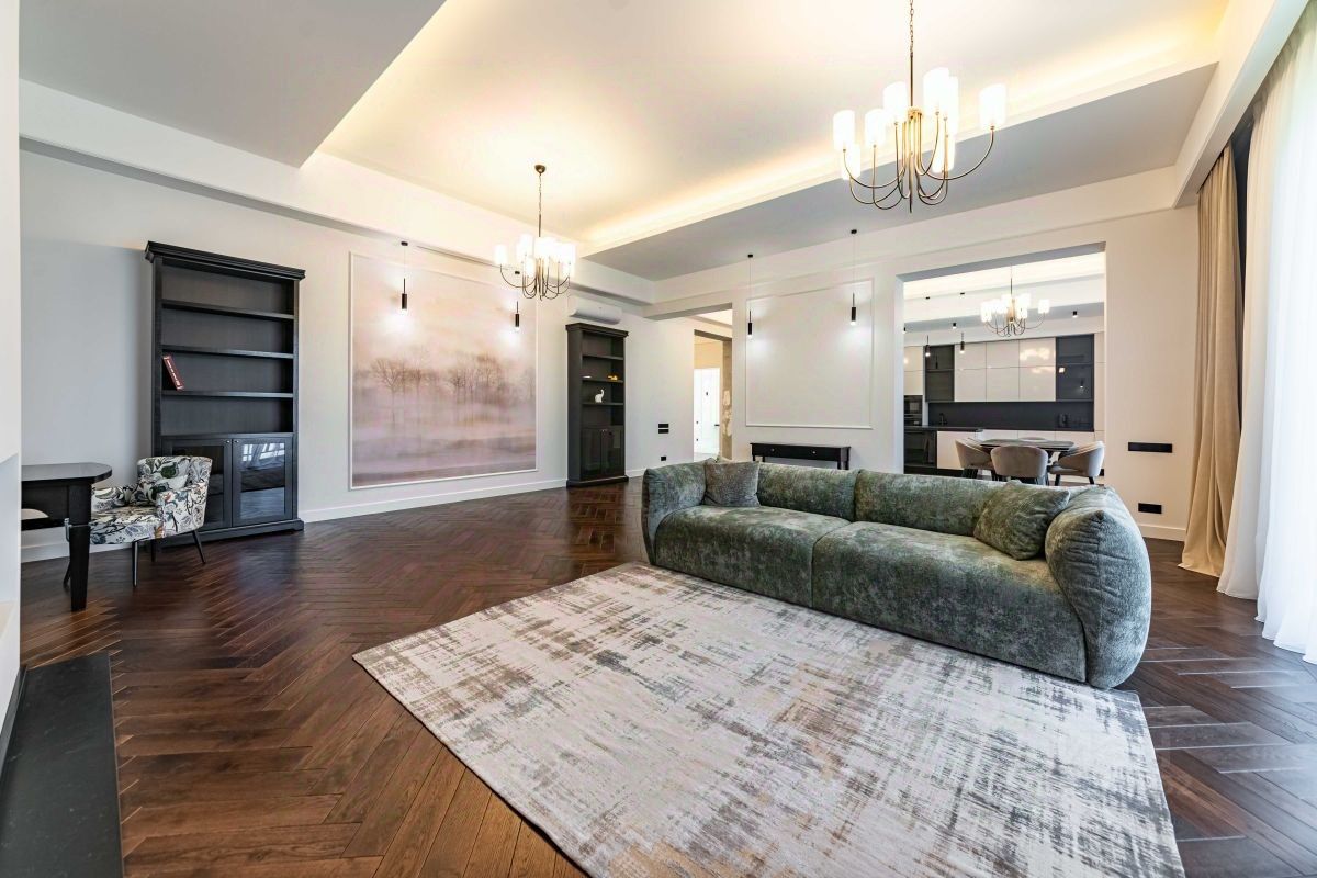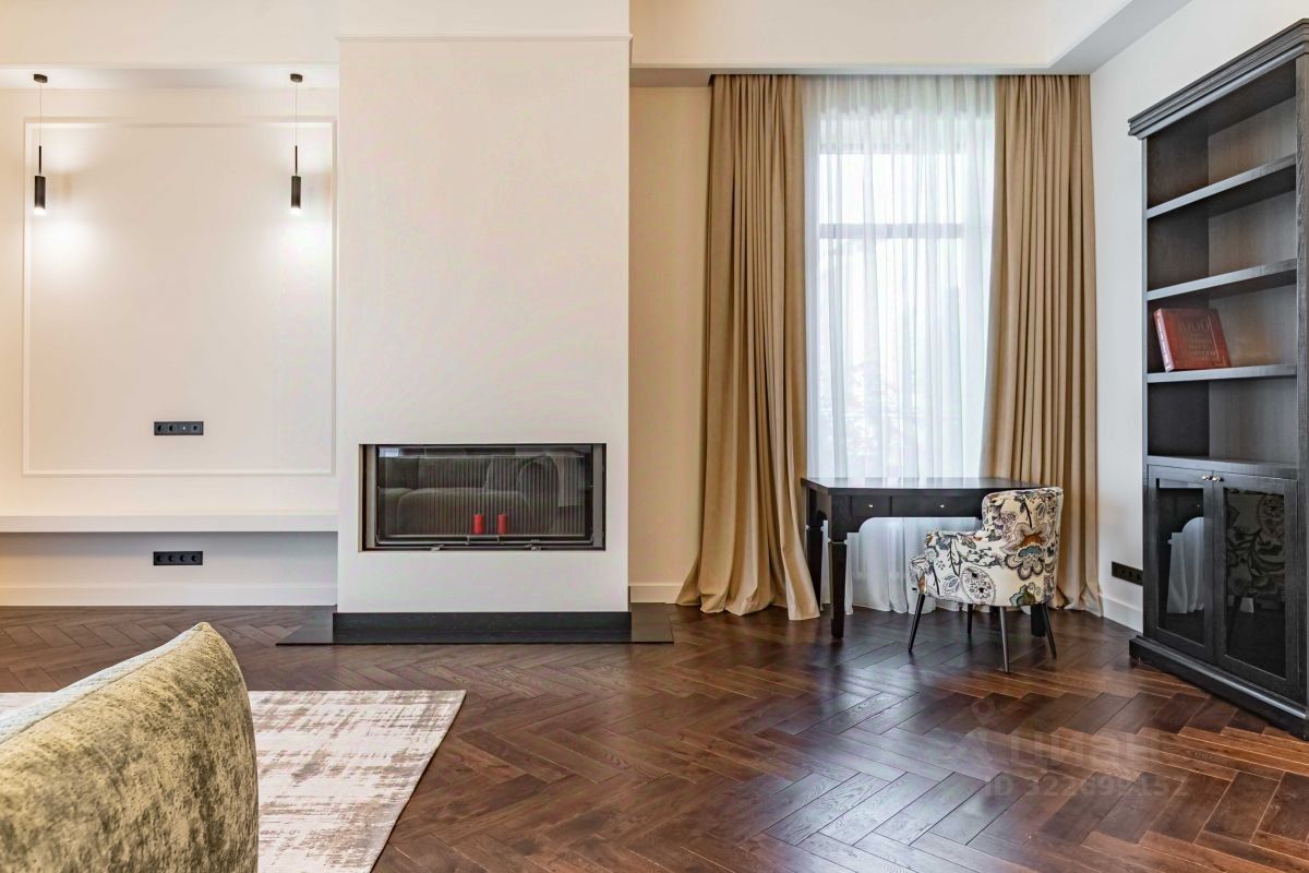 Планировка дома: На первом этаже расположены 4 спальни, 5 санузлов, 3 просторные гардеробные, кабинет и столовая, объединённая с каминным залом и выходом на балкон.