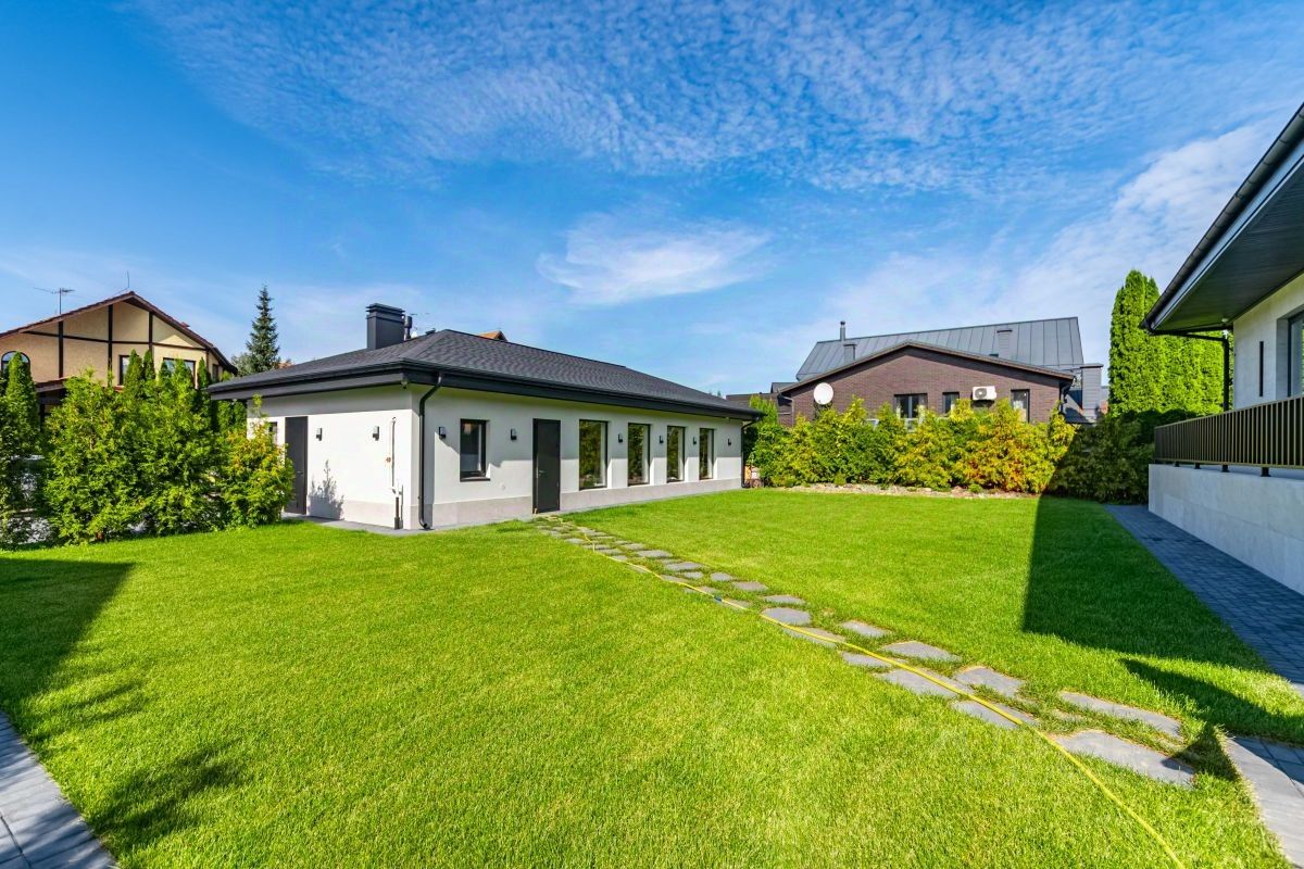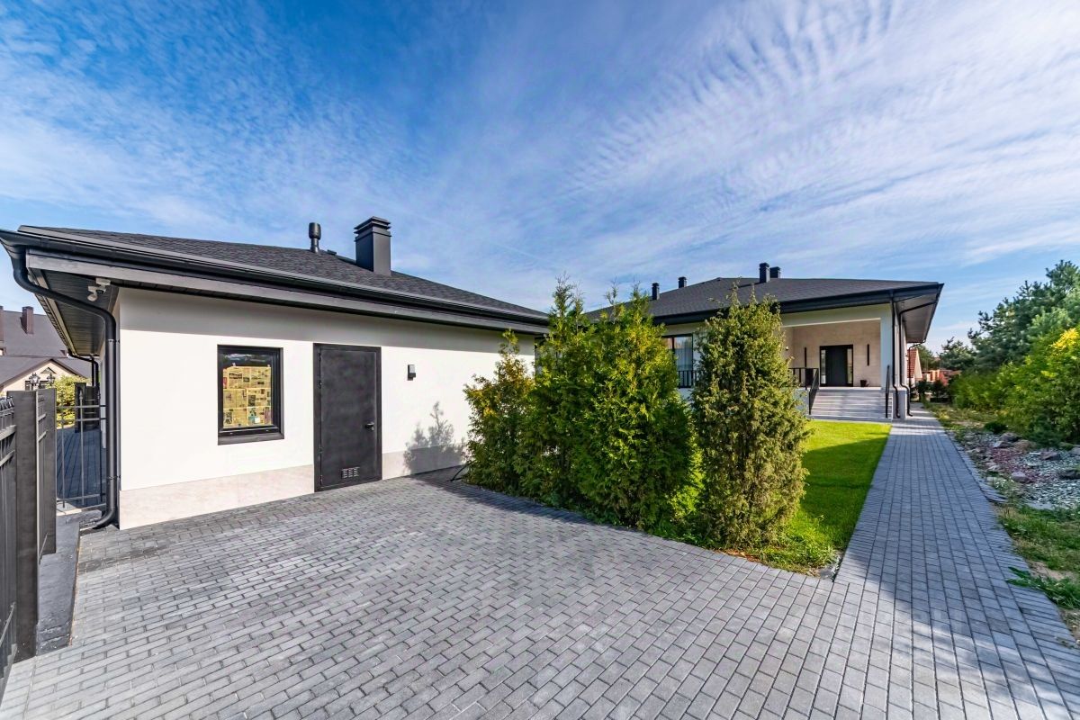 Продаётся новый светлый дом с оригинальной планировкой в охраняемом коттеджном посёлке. В посёлке есть школа и детский сад. В шаговой доступности находятся спортивный центр, озеро, лес, магазин и аптека — всё для комфортной жизни.