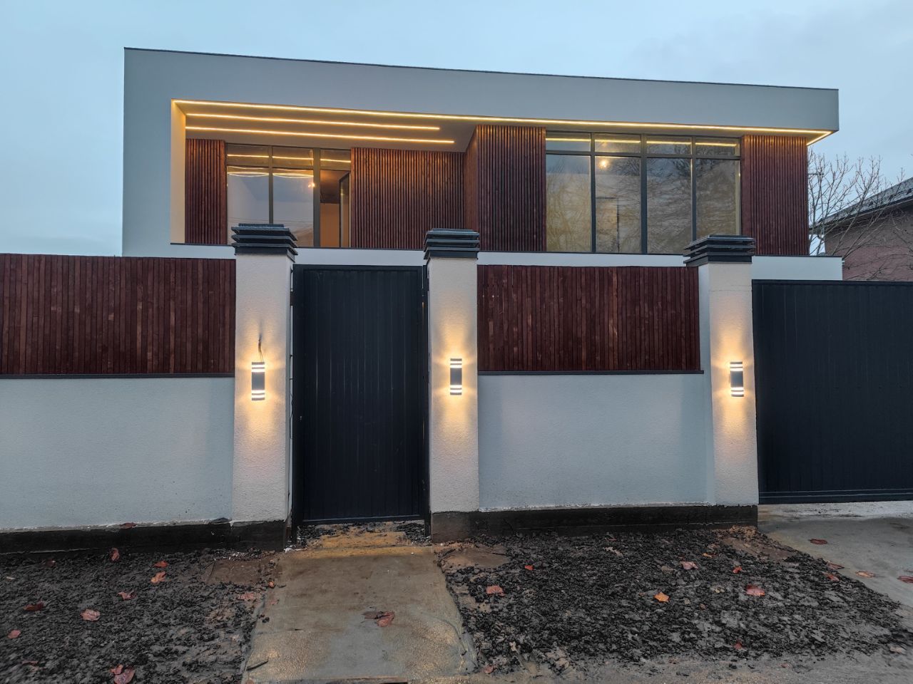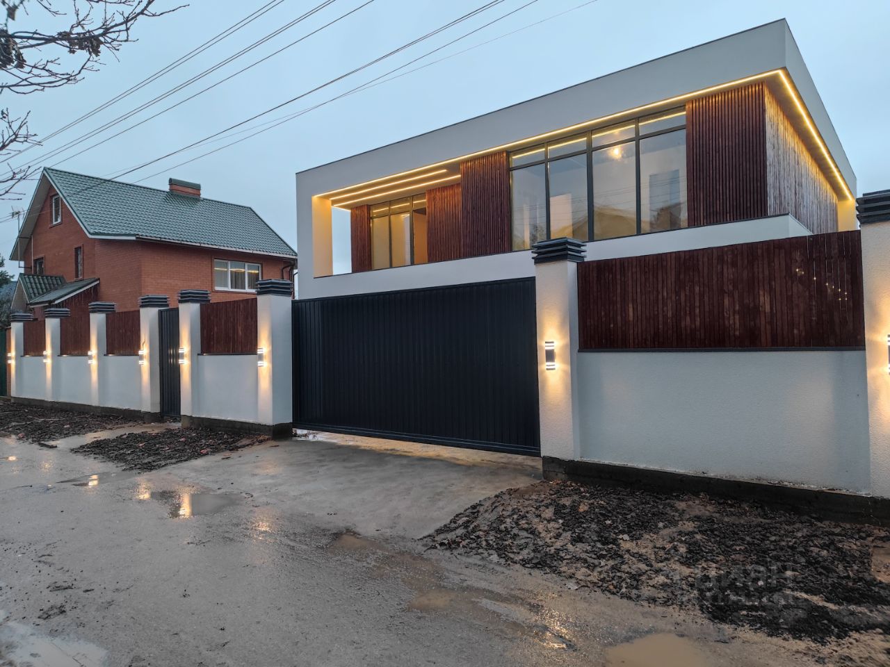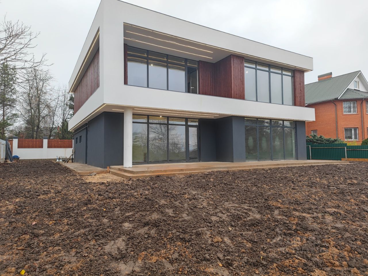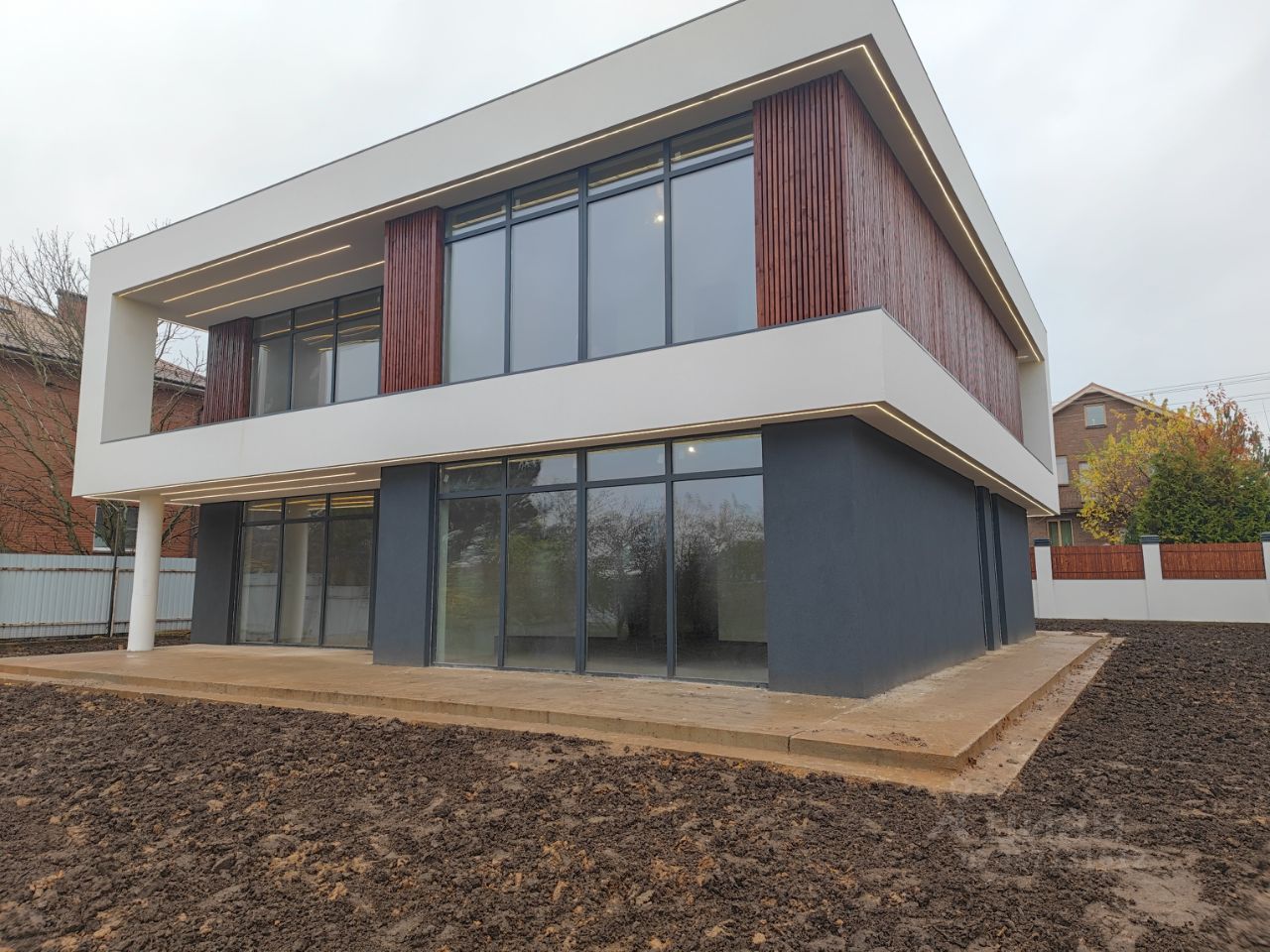 О ДОМЕ: Современный дом 300кв.м. по индивидуальному проекту с плоской крышей на участке 10 соток. Пять спален, четыре с.у., три гардеробные, просторная кухня-гостиная, эргономичная прихожая, отапливаемый гараж на 2 машины. Фундамент монолитная плита 30см с утеплением, межэтажные перекрытия монолитные 20см, стены кирпич, межэтажная лестница - монолитная. Окна энергоэффективные, 70 профиль, Rehau. В доме выполнена отделка White Box (стены выровнены, сделана разводка отопления и водоснабжения, залита чистовая стяжка). Дом отапливается газом. Котельная смонтирована. Выполнена отмостка по периметру дома, а также площадка перед домом для 2ух авто. Фасадный забор в едином стиле с домом, ворота с электроприводом. О УЧАСТКЕ: Прямоугольный формы, выровнен, высажен газон.