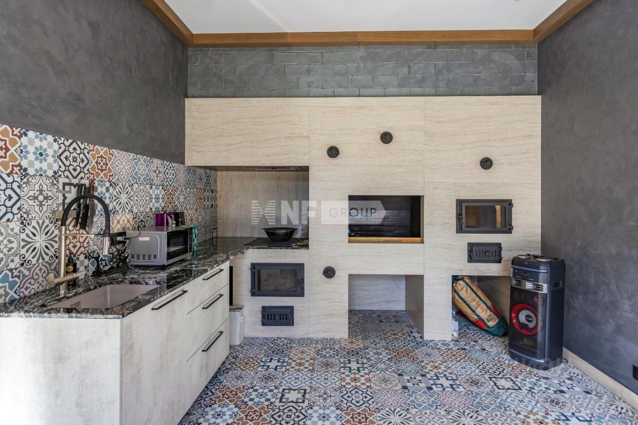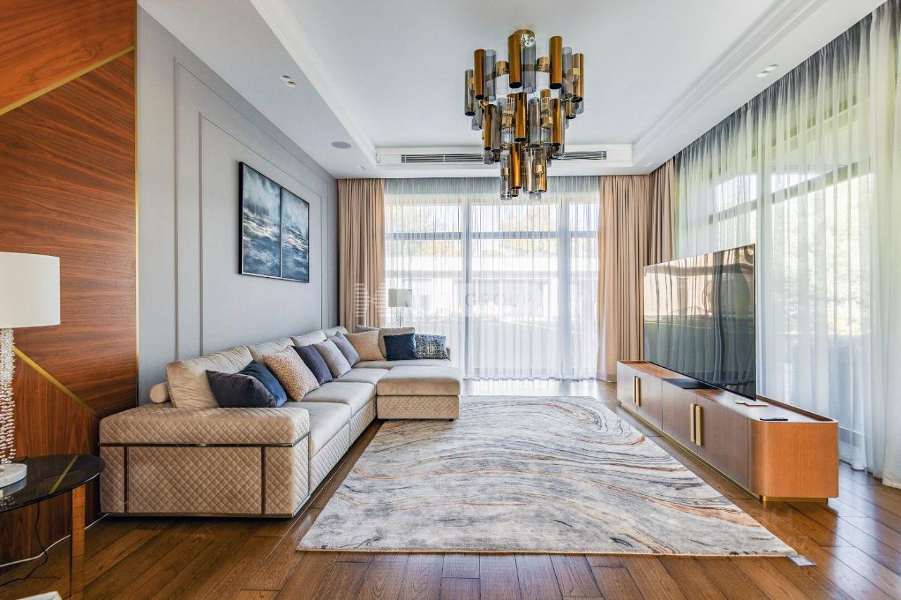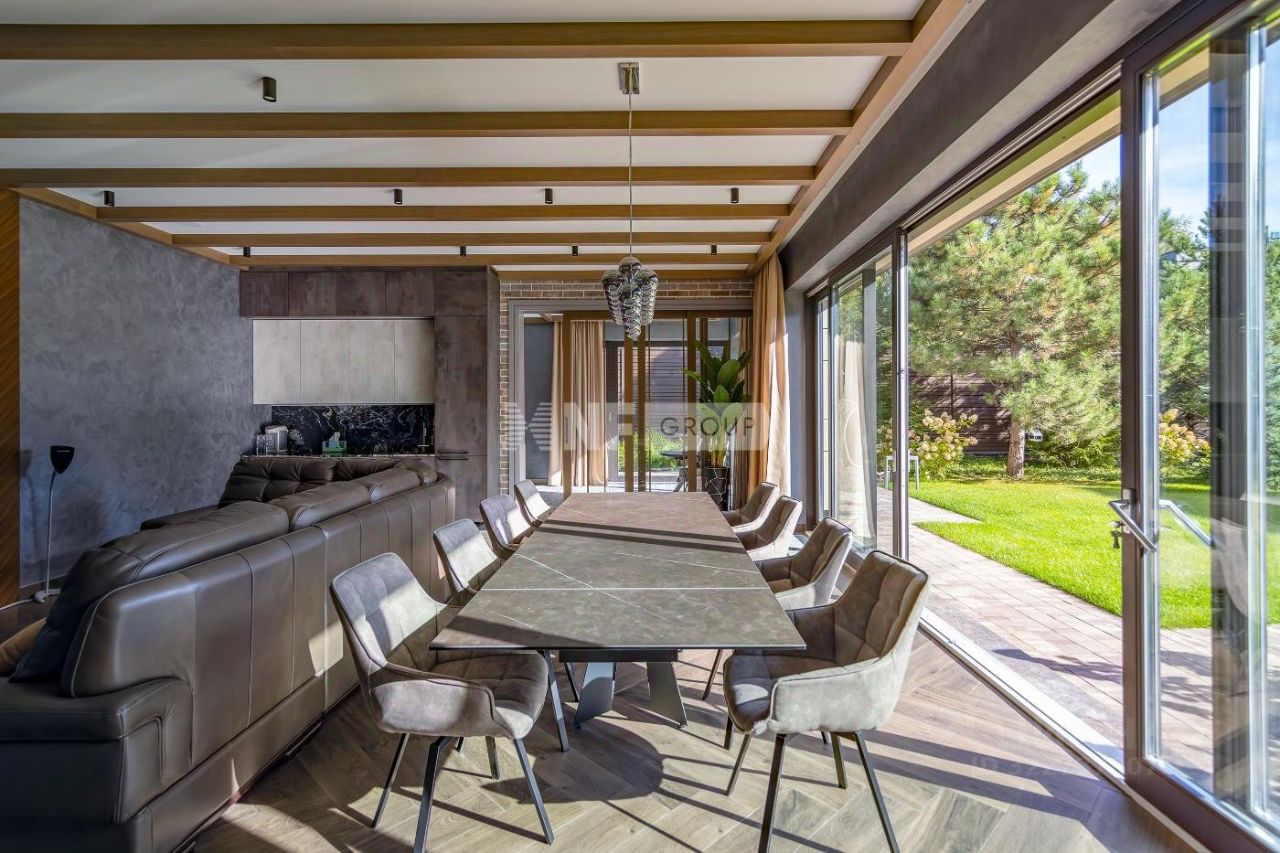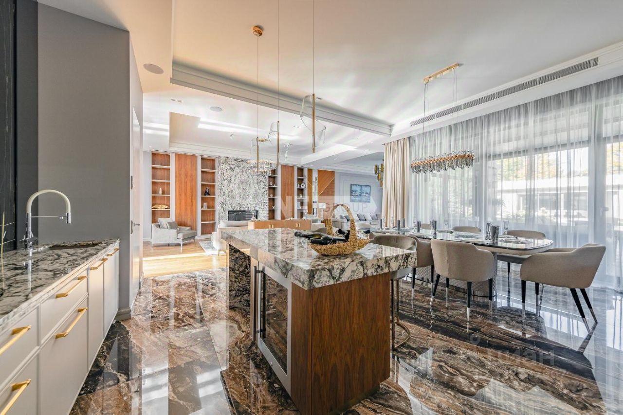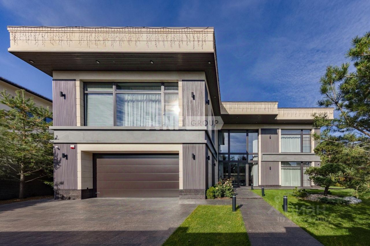 Новый современный дом 1015 кв.м ''под ключ'' с мебелью, расположенный в тихой части поселка рядом с центральным озером и прогулочной зоной. Отделка дома выполнялась из высококачественных современных материалов, инженерные системы включают в себя: приточно-вытяжную вентиляцию с увлажнением и системой кондиционирования воздуха, электро приводы штор, мультирум и Wi-Fi, в доме установлены деревянные стеклопакеты, отделка фасада из натурального камня и лиственницы.