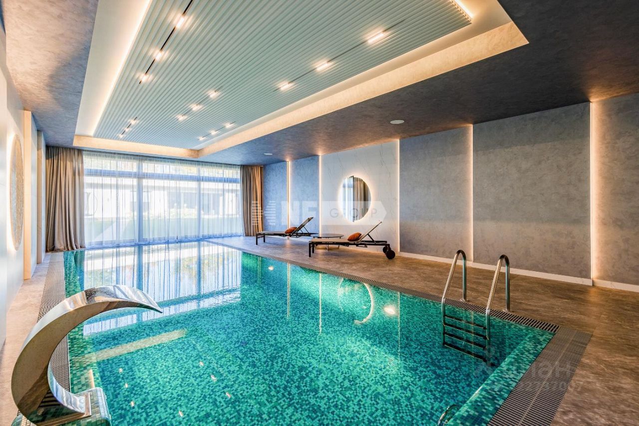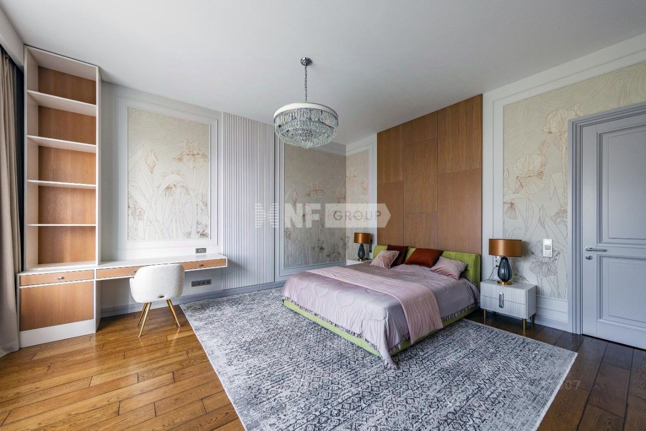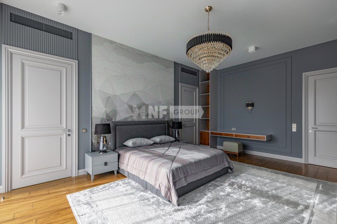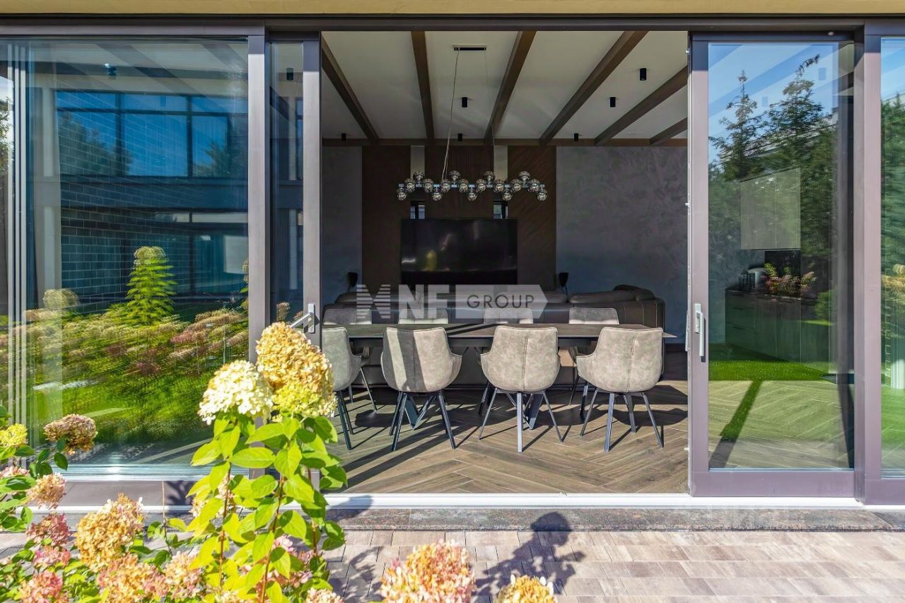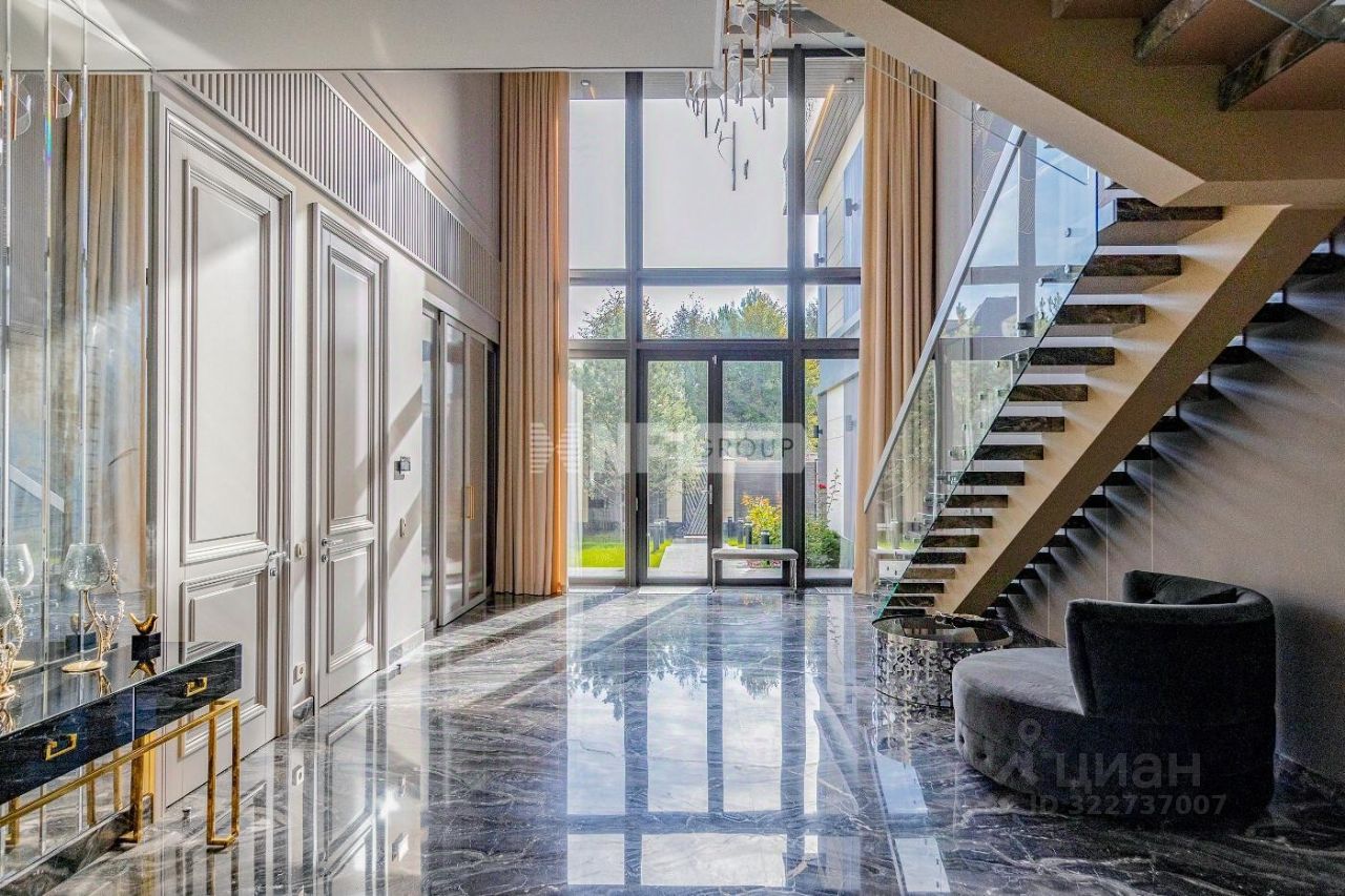 Новый современный дом 1015 кв.м ''под ключ'' с мебелью, расположенный в тихой части поселка рядом с центральным озером и прогулочной зоной. Отделка дома выполнялась из высококачественных современных материалов, инженерные системы включают в себя: приточно-вытяжную вентиляцию с увлажнением и системой кондиционирования воздуха, электро приводы штор, мультирум и Wi-Fi, в доме установлены деревянные стеклопакеты, отделка фасада из натурального камня и лиственницы.