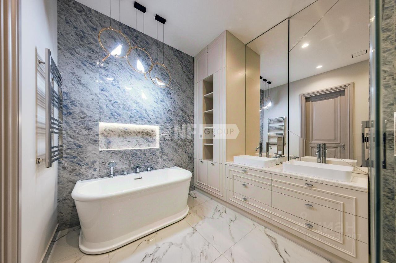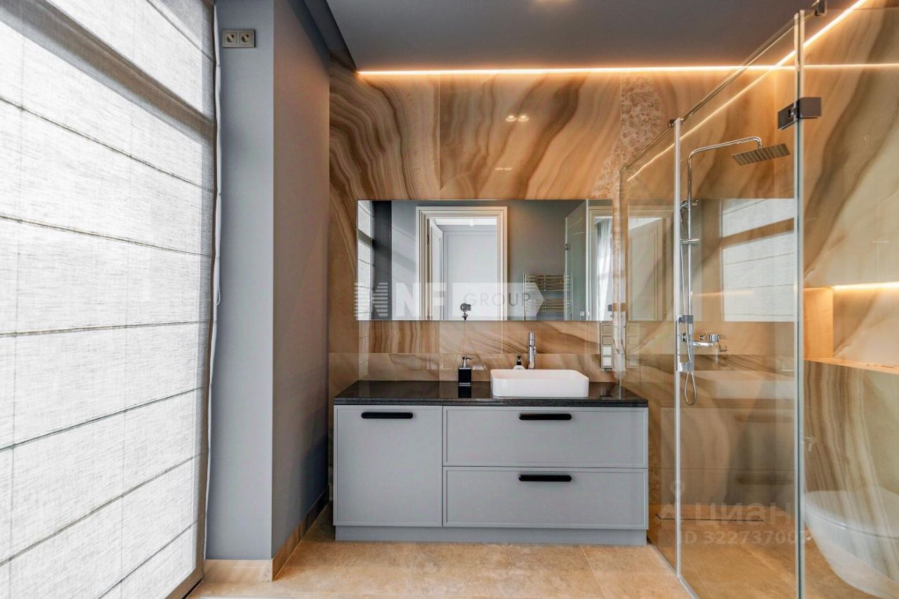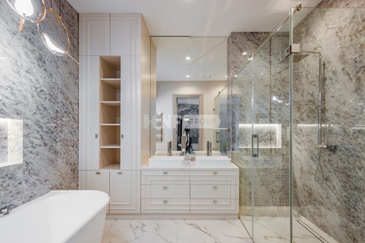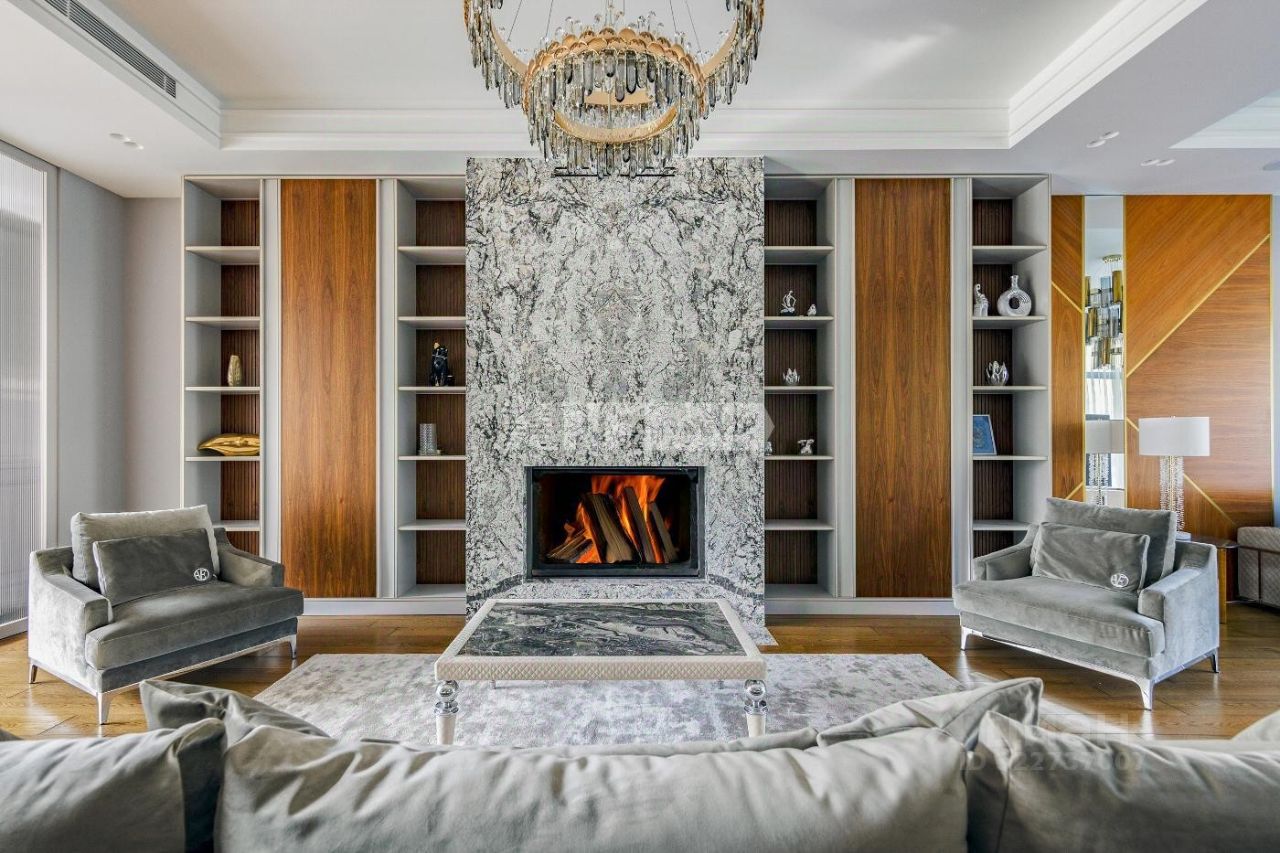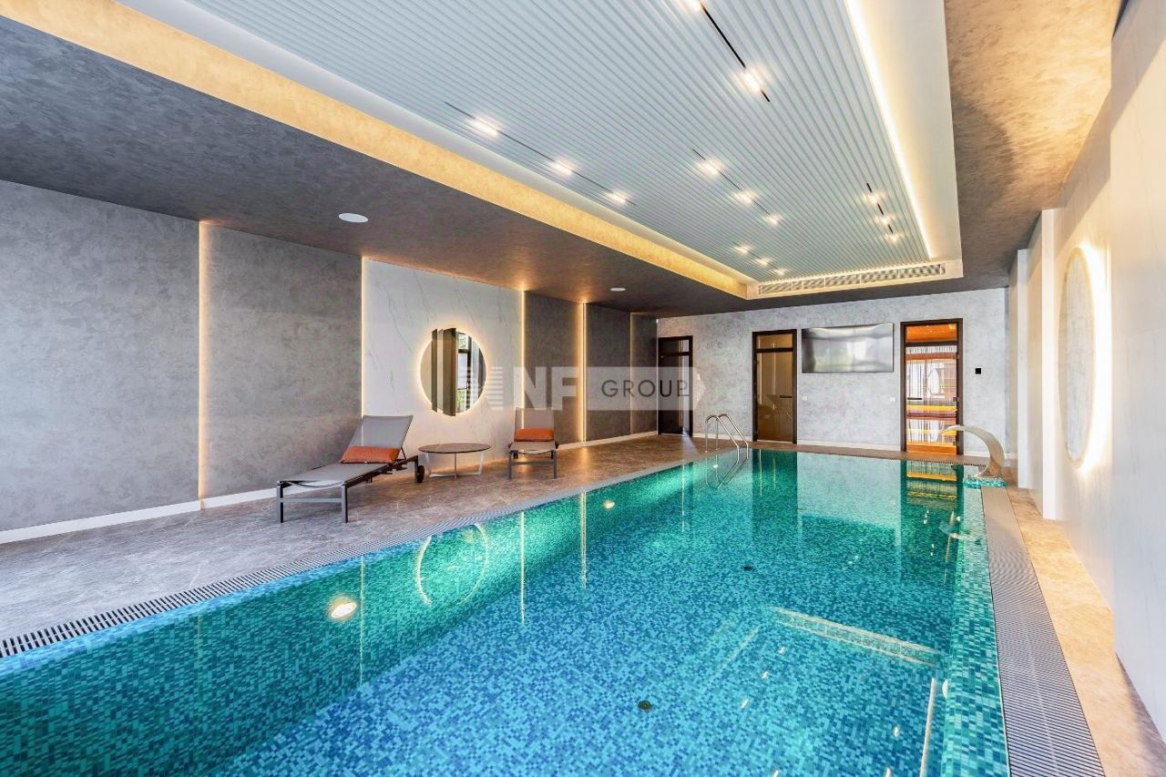 Новый современный дом 1015 кв.м ''под ключ'' с мебелью, расположенный в тихой части поселка рядом с центральным озером и прогулочной зоной. Отделка дома выполнялась из высококачественных современных материалов, инженерные системы включают в себя: приточно-вытяжную вентиляцию с увлажнением и системой кондиционирования воздуха, электро приводы штор, мультирум и Wi-Fi, в доме установлены деревянные стеклопакеты, отделка фасада из натурального камня и лиственницы.