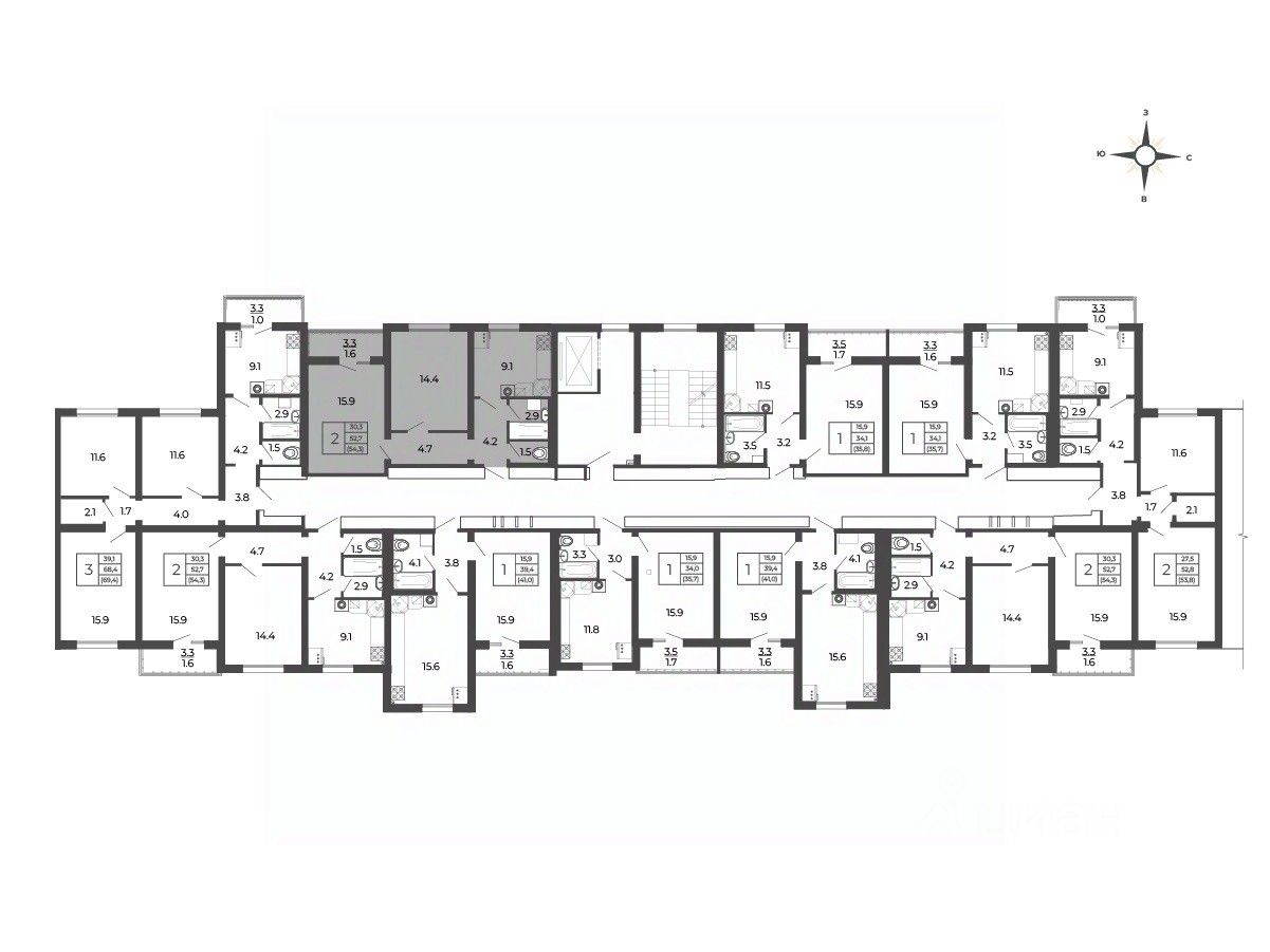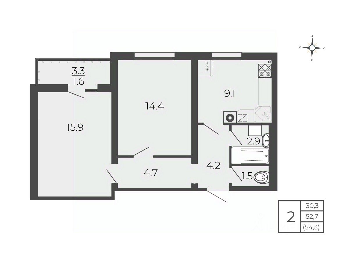 Общая площадь54,3 м2