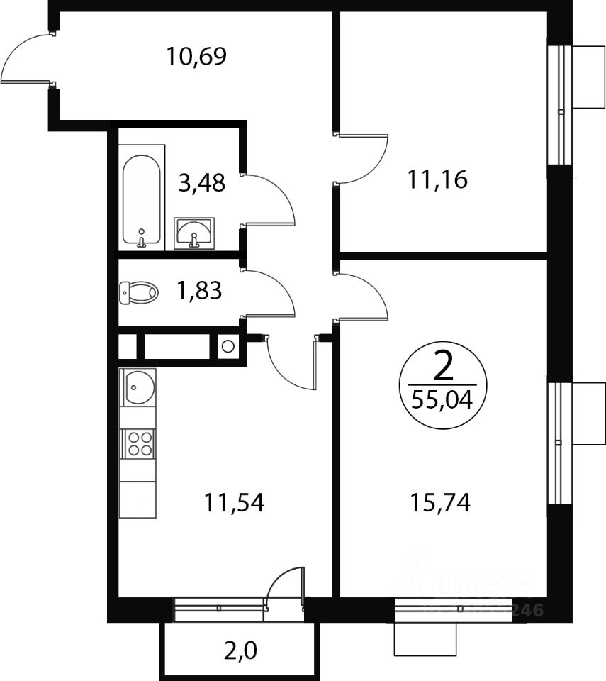 Продаётся 2-комнатная квартира в строящемся доме (Корпус 2), срок сдачи: IV-кв. 2026, общей площадью 55.04 кв.м., на 1 этаже. Расположение, транспортная доступность В состав жилого комплекса ''Катуар'' входят 43 пятиэтажных дома и разнообразная инфраструктура. Это целый посёлок, разместившийся на территории более 30 гектар. Своё название комплекс получил в честь промышленника Льва Катуара, владевшего здесь в XIX веке керамическим заводом, благодаря которому и появился посёлок Некрасовский. До МКАД отсюда 22 километра. Совсем рядом, в пятистах метрах, располагается Дмитровское шоссе. До ближайшей станции московского метро ''Алтуфьево'' можно доехать за 35-40 минут. В трёхстах метрах от комплекса расположена железнодорожная станция ''Катуар'', от которой отходит множество электропоездов до Савёловского вокзала Москвы (самый быстрый из них преодолевает это расстояние за 41 минуту, а до ближайших станций метро можно доехать ещё быстрее). Это самый удобный способ добраться от ЖК до столицы. Примерно в 30-35 минутах езды от комплекса располагаются подмосковные города Дмитров и Мытищи. Инфраструктура В жилом комплексе ''Катуар'' имеется собственная внутренняя инфраструктура, которая включает в себя: детский сад, многофункциональный торговый и общественно-деловой центр, магазины, спортивные площадки, зону барбекю, многоуровневый паркинг и другие объекты. Жителям комплекса не придётся каждый день ездить за покупками в соседние поселки. Поблизости от комплекса (в посёлке Некрасовский и в деревне Сухарево), работают: детские сады, школы, больницы, поликлиники, Дворцы культуры, множество магазинов, мясокомбинат ''Дмитровские колбасы'', конные клубы, санаторий, дворянская усадьба ''Марфино'', построенная в готическом стиле, горнолыжные курорты, СПА-отели. Для того чтобы отдохнуть на природе, жителям Катуара не придется уезжать далеко от дома. Поблизости находятся такие природные зоны, как: обширный Марфинский лесопарк, река Уча, река Саморядовка, несколько прудов, Клязьминское и Икшинское водохранилища. Надёжность застройщика Строительством жилого комплекса ''Катуар'' занималась компания ООО ''Специализированный застройщик ''Катуар Девелопмент''. Организация входит в состав образованной в 2002 году группы компаний ''Ферро-Строй'', которая специализируется на строительстве в Москве жилой, коммерческой и социальной недвижимости. На счету группы компаний ''Ферро-Строй'' строительство в Москве жилого квартала ''Ривер парк'', жилых комплексов ''Примавера'', ''Парковая'', ''Дипломат'', бизнес-центров класса А Pallau RB, Pallau NK, Pallau OST, Pallau MD, торгового центра ''Ключевой'', лечебно-профилактического центра на улице Селезневская, ДОУ на улице Корабельная, школы на улице Речников и другие объекты. Архитектура В жилом комплексе ''Катуар'' представлены квартиры улучшенной планировки с количеством комнат от одной до трех и площадью от 29 кв. метров до 119 кв. метров. Потолки будут иметь высоту 280 см. Общая площадь квартир составит 165 тыс. кв. метров. Квартиры сдаются как с отделкой