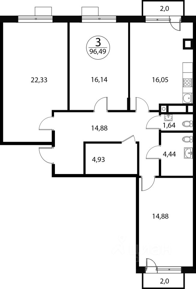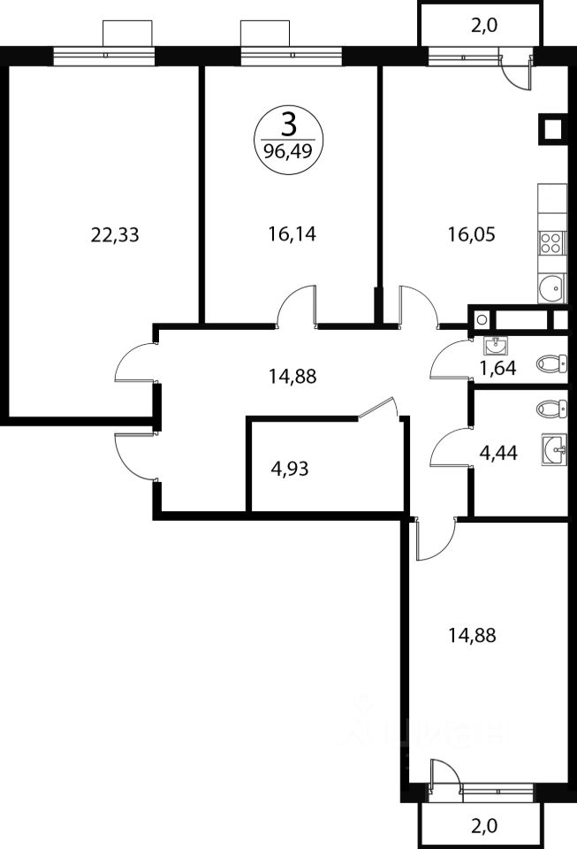 Продаётся 3-комнатная квартира в строящемся доме (Корпус 1), срок сдачи: IV-кв. 2026, общей площадью 96.49 кв.м., на 4 этаже. Расположение, транспортная доступность В состав жилого комплекса ''Катуар'' входят 43 пятиэтажных дома и разнообразная инфраструктура. Это целый посёлок, разместившийся на территории более 30 гектар. Своё название комплекс получил в честь промышленника Льва Катуара, владевшего здесь в XIX веке керамическим заводом, благодаря которому и появился посёлок Некрасовский. До МКАД отсюда 22 километра. Совсем рядом, в пятистах метрах, располагается Дмитровское шоссе. До ближайшей станции московского метро ''Алтуфьево'' можно доехать за 35-40 минут. В трёхстах метрах от комплекса расположена железнодорожная станция ''Катуар'', от которой отходит множество электропоездов до Савёловского вокзала Москвы (самый быстрый из них преодолевает это расстояние за 41 минуту, а до ближайших станций метро можно доехать ещё быстрее). Это самый удобный способ добраться от ЖК до столицы. Примерно в 30-35 минутах езды от комплекса располагаются подмосковные города Дмитров и Мытищи. Инфраструктура В жилом комплексе ''Катуар'' имеется собственная внутренняя инфраструктура, которая включает в себя: детский сад, многофункциональный торговый и общественно-деловой центр, магазины, спортивные площадки, зону барбекю, многоуровневый паркинг и другие объекты. Жителям комплекса не придётся каждый день ездить за покупками в соседние поселки. Поблизости от комплекса (в посёлке Некрасовский и в деревне Сухарево), работают: детские сады, школы, больницы, поликлиники, Дворцы культуры, множество магазинов, мясокомбинат ''Дмитровские колбасы'', конные клубы, санаторий, дворянская усадьба ''Марфино'', построенная в готическом стиле, горнолыжные курорты, СПА-отели. Для того чтобы отдохнуть на природе, жителям Катуара не придется уезжать далеко от дома. Поблизости находятся такие природные зоны, как: обширный Марфинский лесопарк, река Уча, река Саморядовка, несколько прудов, Клязьминское и Икшинское водохранилища. Надёжность застройщика Строительством жилого комплекса ''Катуар'' занималась компания ООО ''Специализированный застройщик ''Катуар Девелопмент''. Организация входит в состав образованной в 2002 году группы компаний ''Ферро-Строй'', которая специализируется на строительстве в Москве жилой, коммерческой и социальной недвижимости. На счету группы компаний ''Ферро-Строй'' строительство в Москве жилого квартала ''Ривер парк'', жилых комплексов ''Примавера'', ''Парковая'', ''Дипломат'', бизнес-центров класса А Pallau RB, Pallau NK, Pallau OST, Pallau MD, торгового центра ''Ключевой'', лечебно-профилактического центра на улице Селезневская, ДОУ на улице Корабельная, школы на улице Речников и другие объекты. Архитектура В жилом комплексе ''Катуар'' представлены квартиры улучшенной планировки с количеством комнат от одной до трех и площадью от 29 кв. метров до 119 кв. метров. Потолки будут иметь высоту 280 см. Общая площадь квартир составит 165 тыс. кв. метров. Квартиры сдаются как с отделкой