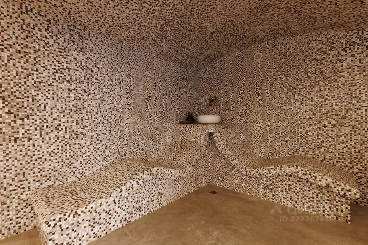 1 этаж: парадный холл, гостиная с панорамными окнами и камином, кухня с дополнительным помещением, кинозал с баром и выходом в сад, гостевая спальня, санузел, SPA-блок с бассейном, душевой и хаммамом, гараж на 4 автомобиля, полноценный блок для персонала с двумя спальнями, ванной и кухней, несколько помещений для хранения.