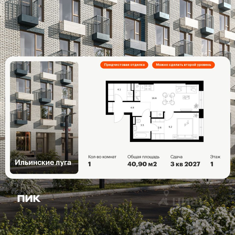 Продаётся 1-комн. квартира площадью 40,9 кв.м на 1 этаже 9 этажного дома (Корпус 4.3, Секция 4) проекта ПИК Ильинские луга. Светлый просторный подъезд на уровне земли, функциональная планировка, большие окна, предчистовая отделка.