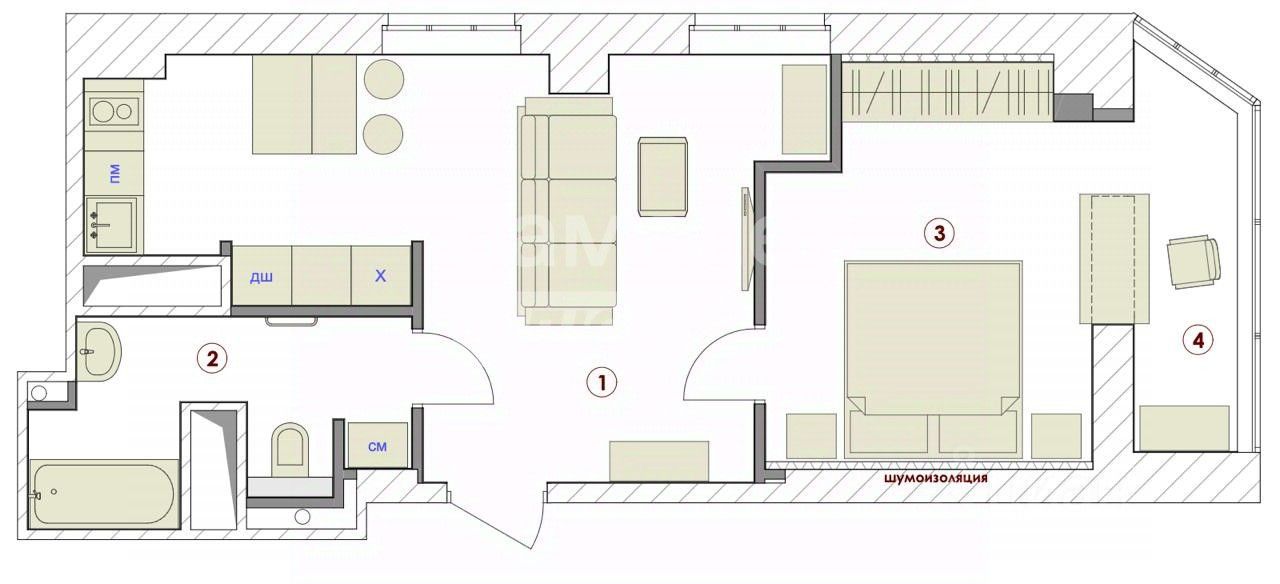 Умная планировка: Это уютная евродвушка с одной изолированной спальней и большой совмещенной кухней-гостиной. Идеальный баланс уединения и простора для жизни.