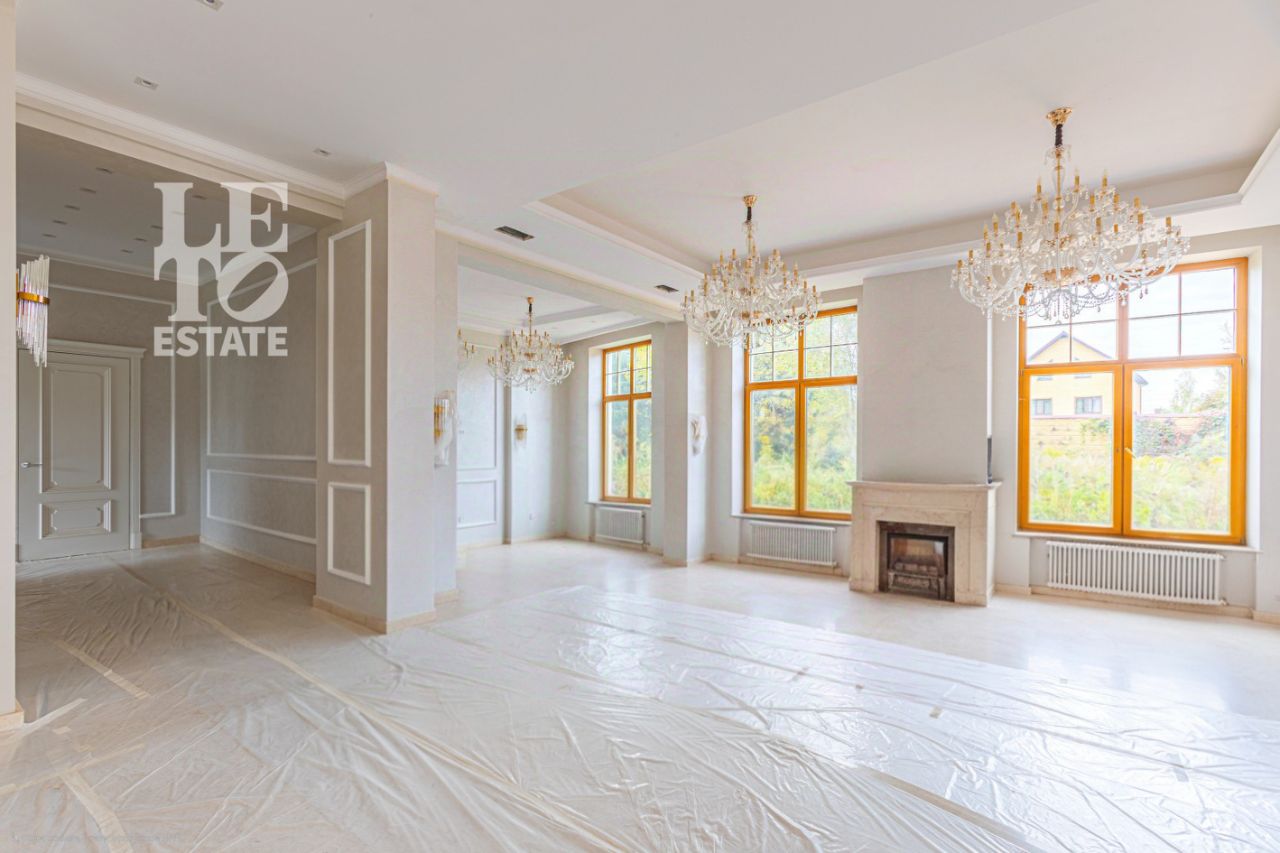 Арт. 114055022 Представляем вашему вниманию дом с отделкой ''под ключ'' площадью 1000 кв. м в охраняемом коттеджном поселке ''Новахово'', расположенном рядом с Москвой в 9 км от МКАД по Новорижскому шоссе. Дом построен в классическом стиле. Фасад дома украшен барельефами, входная группа выделена колоннами и красивым крыльцом с лестницей. Выполнена фасадная шпатлевка. В доме предусмотрена приточно-вытяжная вентиляция. Отделка выполнена с использованием элементов из дерева, мрамора и ковки. Украшением дома служит прекрасная мраморная лестница с коваными ограждениями и перилами из массива дуба. Высота потолков в комнатах 3,5 м. На полу наборный паркет из дуба. На всем первом этаже сделан теплый пол, на втором этаже только в санузлах. Участок площадью 20 соток правильной формы, по периметру растут ели и сосны. В поселке есть все центральные коммуникации: электроснабжение, водоснабжение, газ, канализация в т. ч. и ливневая.