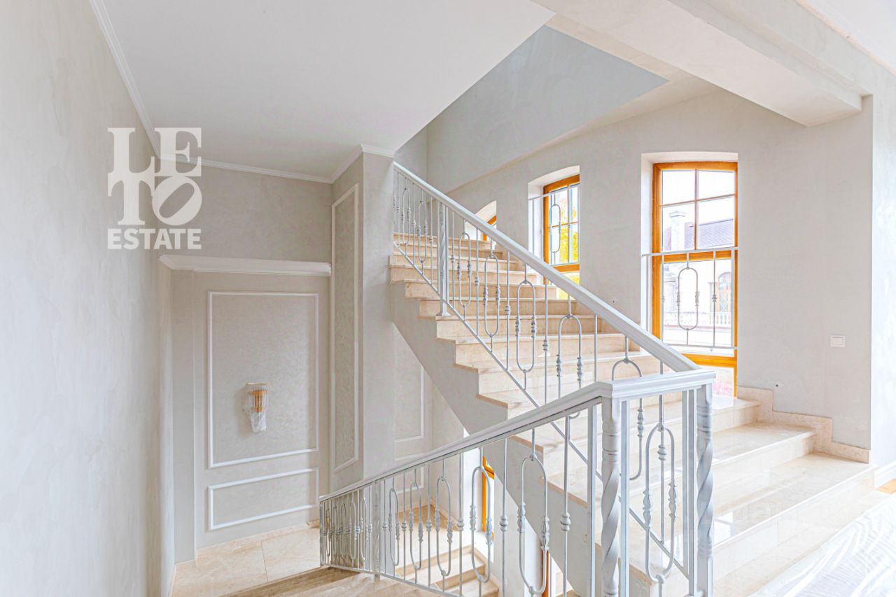 Арт. 114055022 Представляем вашему вниманию дом с отделкой ''под ключ'' площадью 1000 кв. м в охраняемом коттеджном поселке ''Новахово'', расположенном рядом с Москвой в 9 км от МКАД по Новорижскому шоссе. Дом построен в классическом стиле. Фасад дома украшен барельефами, входная группа выделена колоннами и красивым крыльцом с лестницей. Выполнена фасадная шпатлевка. В доме предусмотрена приточно-вытяжная вентиляция. Отделка выполнена с использованием элементов из дерева, мрамора и ковки. Украшением дома служит прекрасная мраморная лестница с коваными ограждениями и перилами из массива дуба. Высота потолков в комнатах 3,5 м. На полу наборный паркет из дуба. На всем первом этаже сделан теплый пол, на втором этаже только в санузлах.