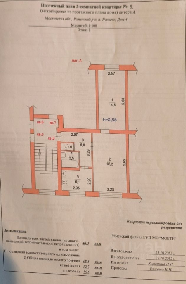 Квартира расположена на 2-м эт.двухэтажного кирпичного дома.