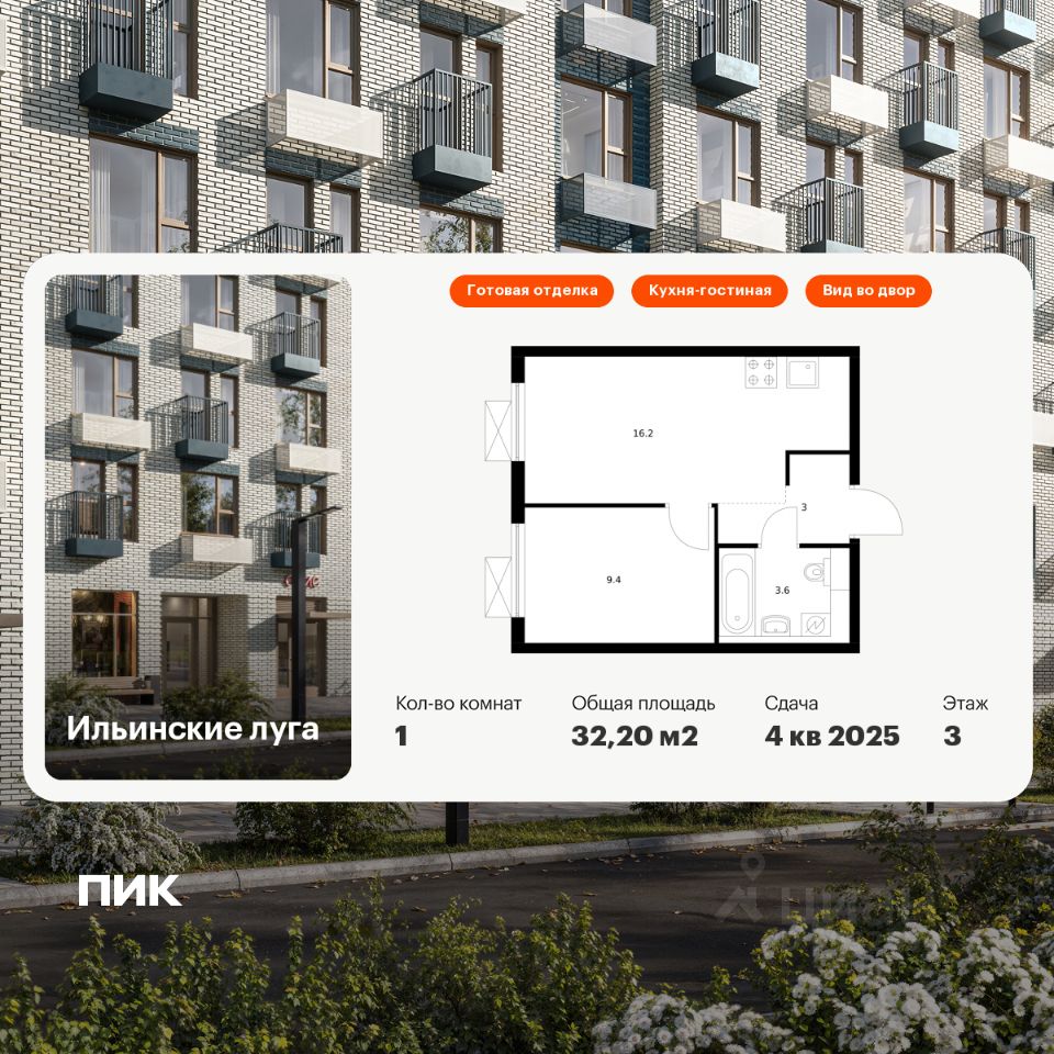 Продаётся 1-комн. квартира площадью 32,2 кв.м на 3 этаже 9 этажного дома (Корпус 2.13, Секция 1) проекта ПИК Ильинские луга. Светлый просторный подъезд на уровне земли, функциональная планировка, большие окна, c отделкой.