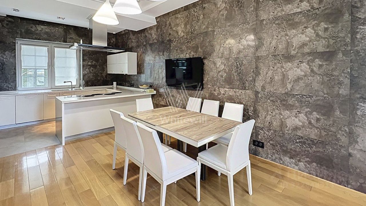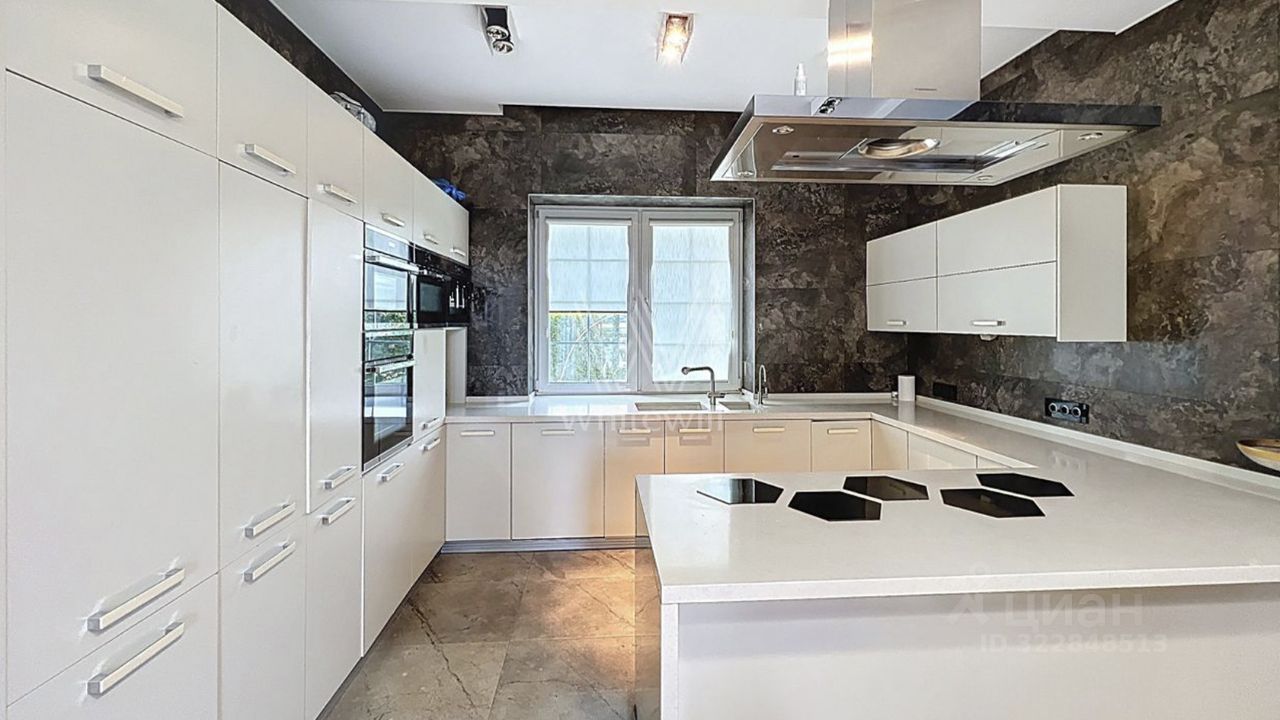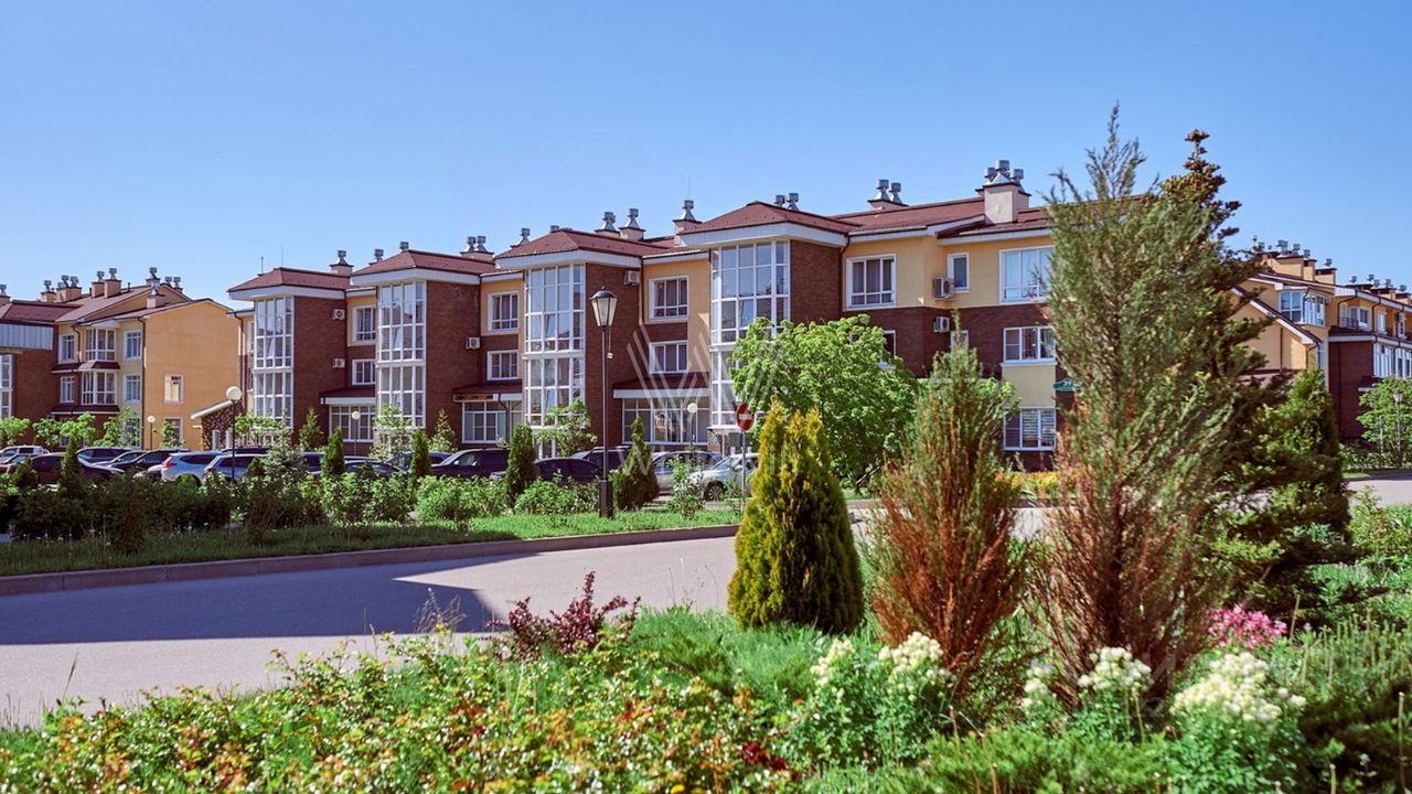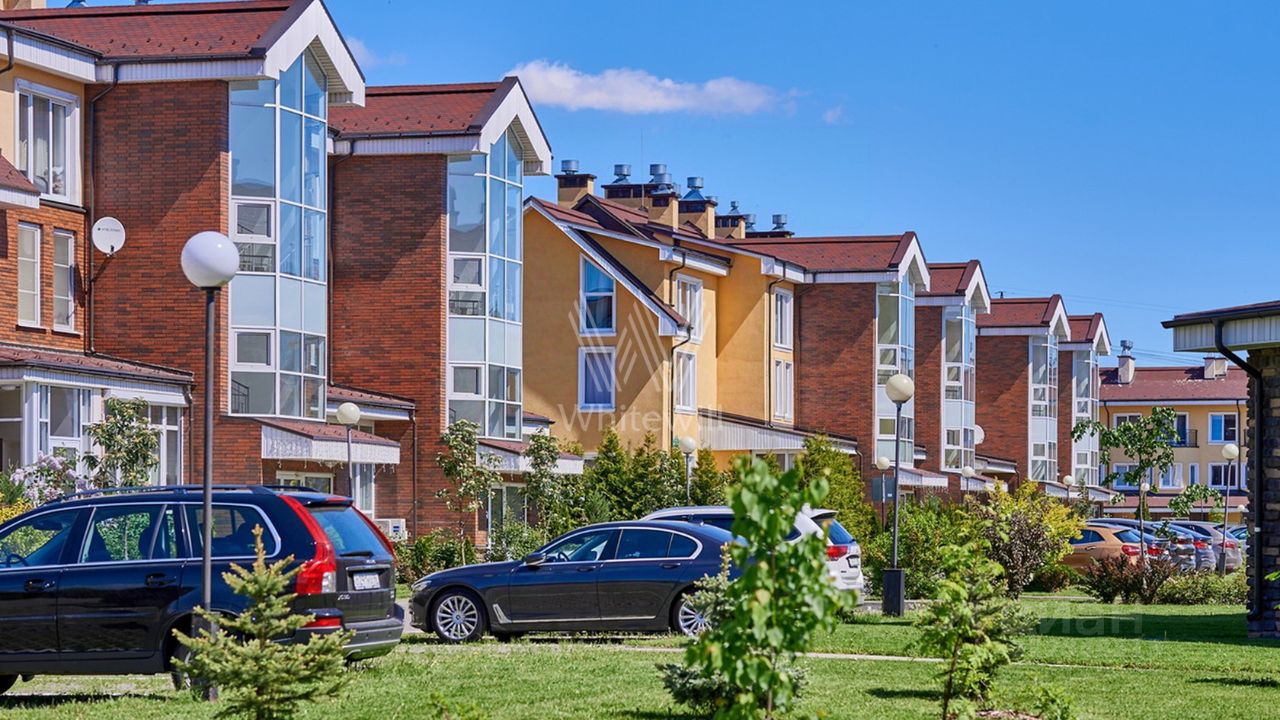 Ангелово-Резиденц. Загородный угловой таунхаус площадью 450 м² расположен на полевом участке 2 сотки. Фасад, выполненный в европейском стиле, облицован бежевой штукатуркой, благородным клинкерным кирпичом, а также украшен элегантными колоннами и белоснежными наличниками. Современные интерьеры выдержаны преимущественно в светлых тонах и укомплектованы комфортной мебелью, бытовой техникой и сантехникой от ведущих производителей.