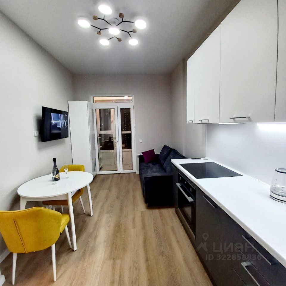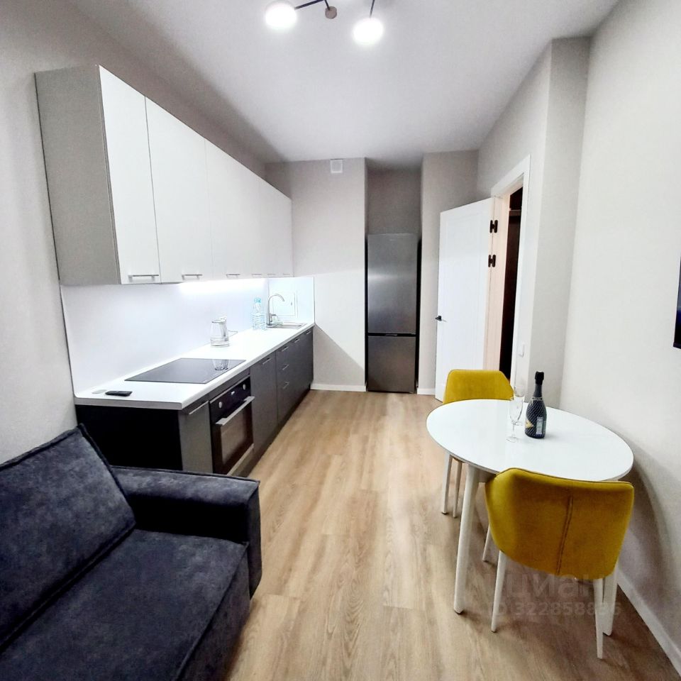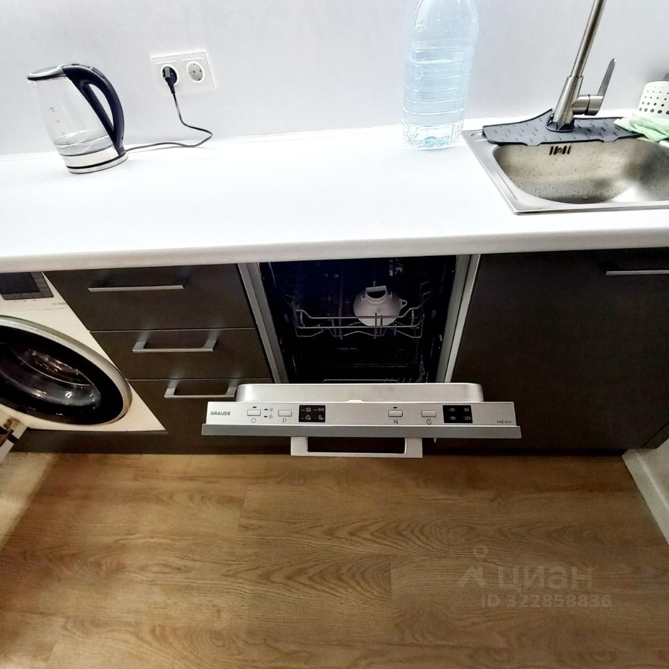 Квартира полностью готова к въезду и комфортному проживанию. В КУХНЕ-ГОСТИНОЙ: - кухонный гарнитур, из техники: варочная панель, вытяжка, духовой шкаф, холодильник, посудомоечная машина, электро-чайник, стиральная машина, - ортопедический диван Moon (раскладывается с полноразмерное спальное место), - круглый раздвижной стол, стильные стулья, - шкаф, - телевизор 42 дюйма с 300 бесплатными каналами.