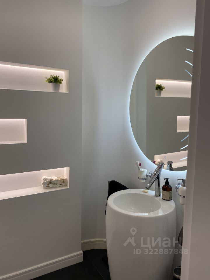 Санузлы: - Основная ванная с угловой гидромассажной ванной, два окна, - Встроенные душевые с качественной сантехникой, - Тёплые полы, подсветка, зеркала с подсветкой и сенсорами.