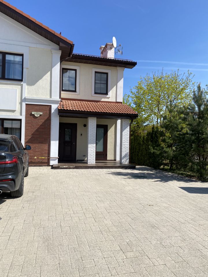 Сдаётся дизайнерский таунхаус 250 м² в клубном охраняемом посёлке таунхаусов Александровский, ул.Пушкина, д.2 (Ильинское шоссе, 12 км от МКАД) Фасад выполнен в классическом европейском стиле с отделкой под кирпич и черепичной крышей. Уютное крыльцо, ухоженный участок с террасой, газоном и живой изгородью из туй. Просторная парковка на 3 машины. Задний двор с мебелью для отдыха и запасным выходом. Внутри поселка — тихие улицы с освещением и видеонаблюдением.