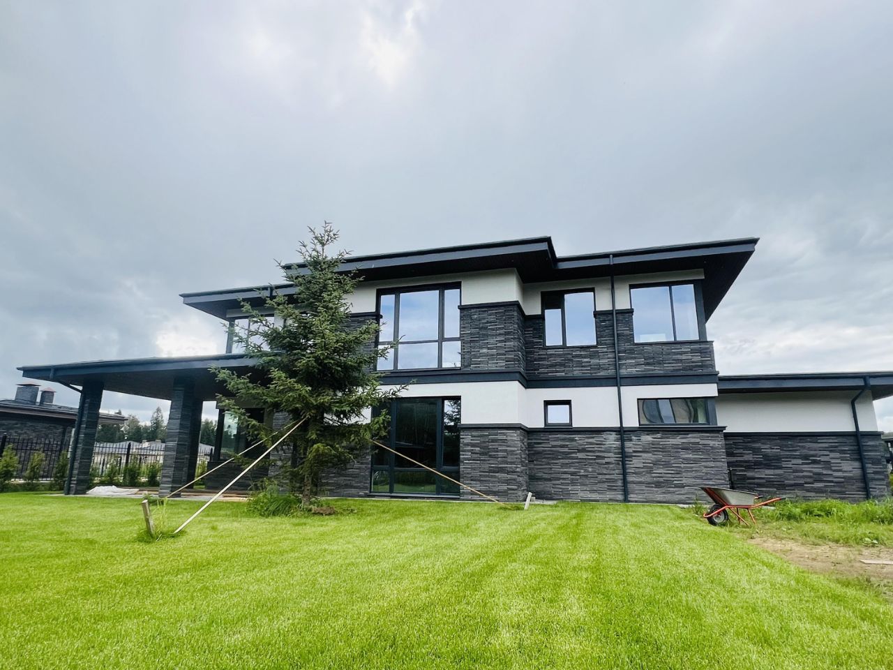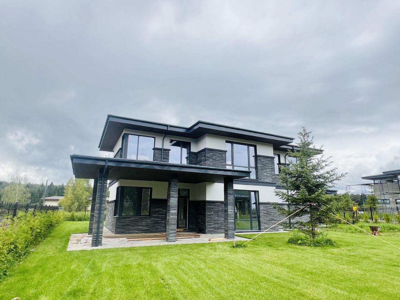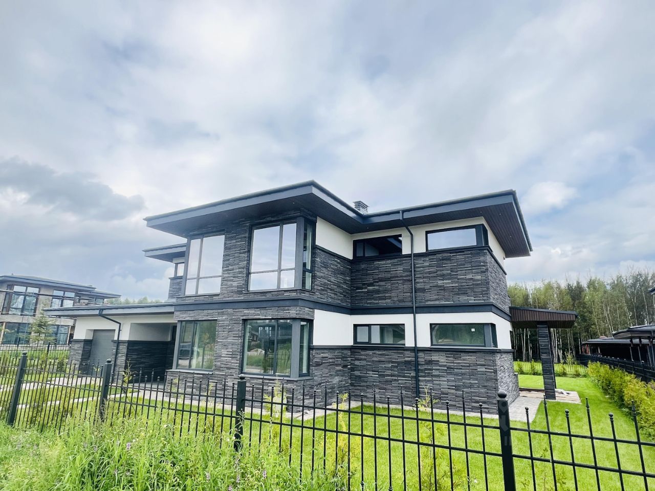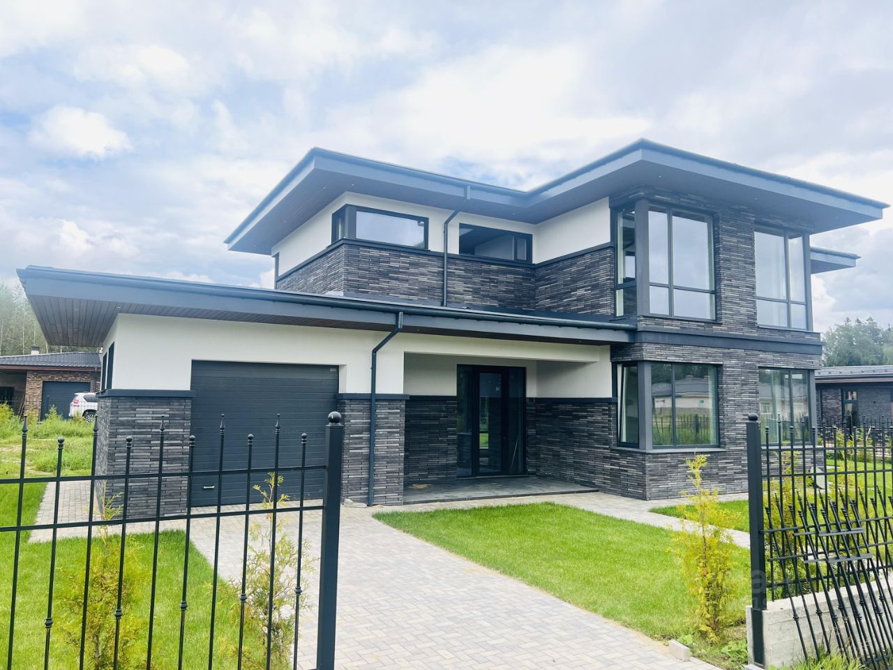 Общая площадь дома в стиле ''Райта'' 305 кв.м (1 этаж - 122 м2, второй этаж - 110 м2, терраса и крыльцо - 47 м2, гараж 26 м2) на участке 11,31 сотки в коттеджном посёлке-парке ''Аркадия''. Новорижское шоссе 56 км (30 минут от МКАД). Все центральные коммуникации (под землей) входят в стоимость участка.