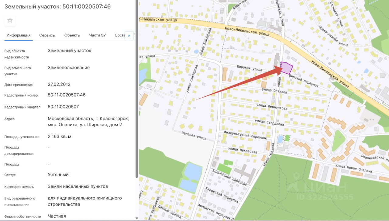Евгений - Московская обл., г. Красногорск, мкр. Опалиха, ул. Широкая, д. 2. Продается участок со всеми центральными коммуникациями: магистральный газ, водопровод, канализация, электричество. 15 кВт. Площадь участка 2 163 кв. м, ровный, сухой. На пересечении двух улиц Широкая и Чапаева. Очень хорошая транспортная доступность.