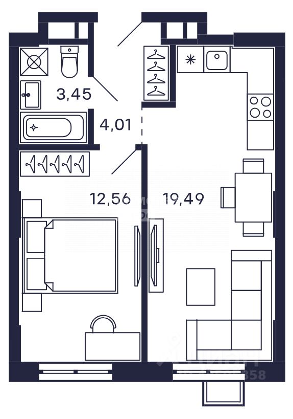 Арт. 120100713 Евродвушка 38 м² с предчистовой отделкой (white box) в ЖК ''Тетрис'' (Красногорск)