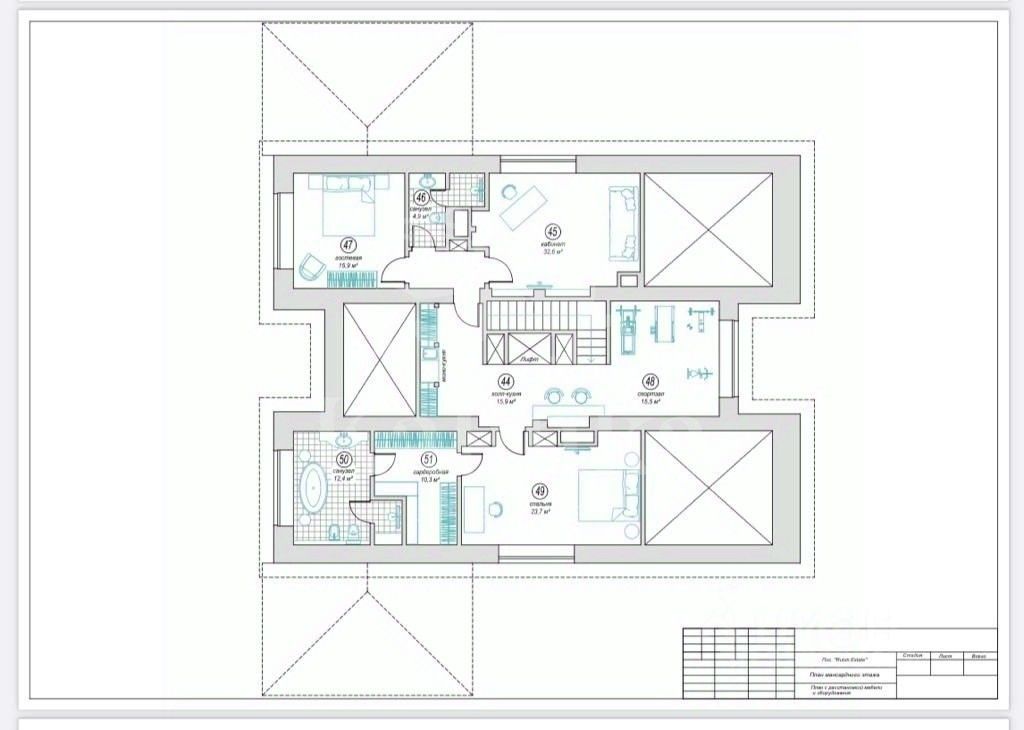 Предлагается дом 700 кв. м. на участке 24 сотки. Дом построен, отапливается и готов к отделке. Все необходимые коммуникации подведены и разведены по дому. Дом имеет 4 уровня и функциональную планировку. В доме все спальни (6 спален и 2 кабинета) со индивидуальными ванными комнатами, есть комнаты с выходом на открытые террасы. Предусмотрена зона проживания с отдельным входом для помощника по хозяйству и комната для няни. На участке подготовлен фундамент для строительства гаража с просторным помещением для персонала. На ухоженной территории 26 домов, все коттеджи в едином стиле. Рядом с домом разбит небольшой парк с прудом.