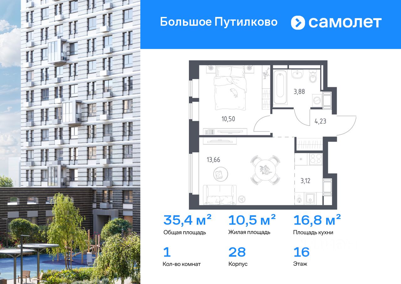 Строим кварталы для жизни с заботой о будущем. Предлагается 1-комнатная квартира комфорт-класса 35,39 кв.м в корпусе 28 на 16 этаже, в ЖК ''Большое Путилково'' Квартира без отделки. Доступность опции ''отделка'' и возможность комплектации мебелью и декором уточняйте у застройщика.