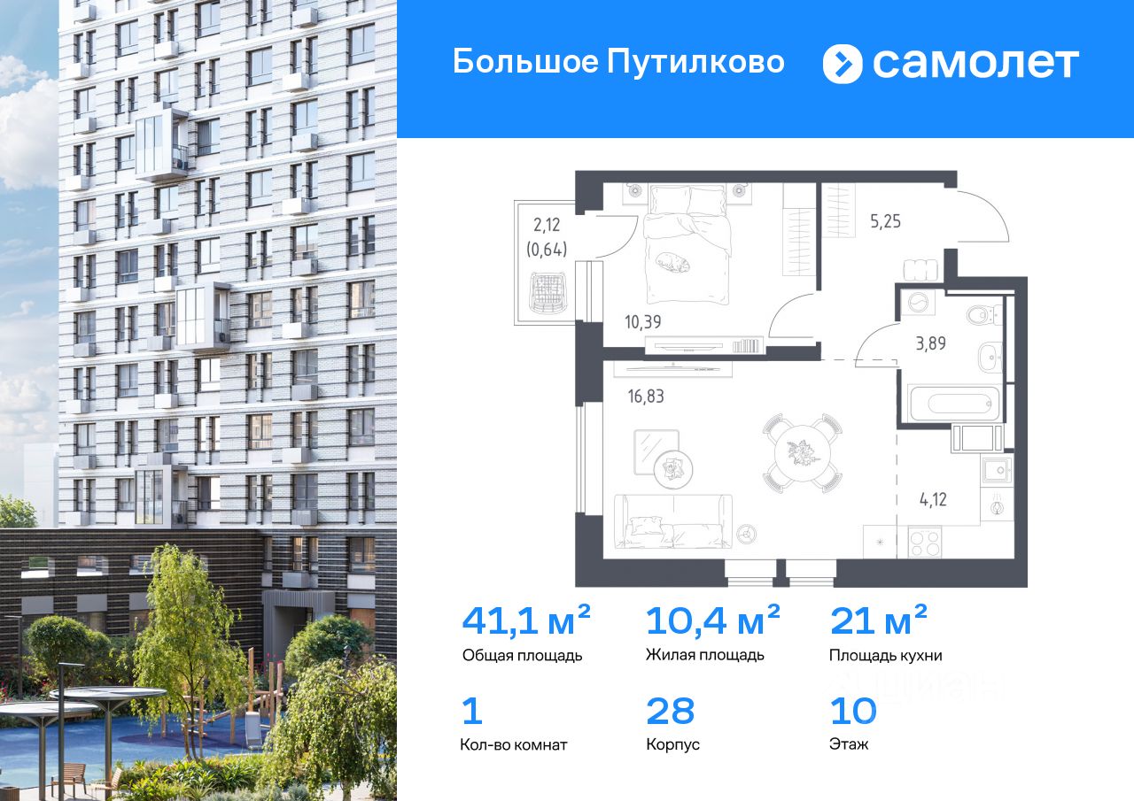 Строим кварталы для жизни с заботой о будущем. Предлагается 1-комнатная квартира комфорт-класса 41,12 кв.м в корпусе 28 на 10 этаже, в ЖК ''Большое Путилково'' Квартира без отделки. Доступность опции ''отделка'' и возможность комплектации мебелью и декором уточняйте у застройщика.