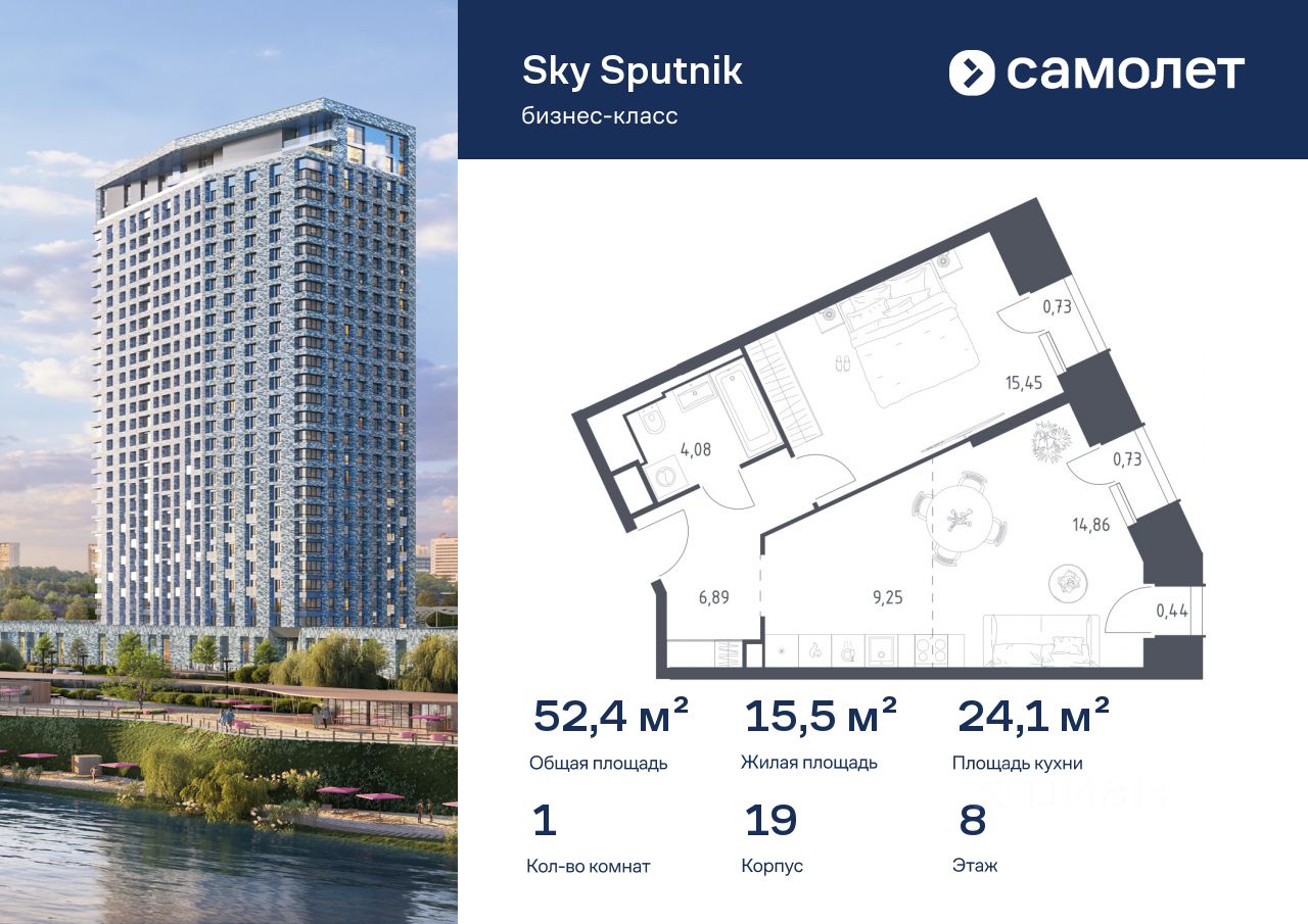 Строим кварталы для жизни с заботой о будущем. Предлагаются 1-комнатные апартаменты бизнес-класса 52,43 кв.м в корпусе 19 на 8 этаже, в Sky Sputnik Апартаменты без отделки. Доступность опции ''отделка'' и возможность комплектации мебелью и декором уточняйте у застройщика.