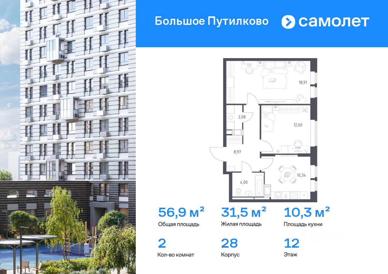 Строим кварталы для жизни с заботой о будущем. Предлагается 2-комнатная квартира комфорт-класса 56,9 кв.м в корпусе 28 на 12 этаже, в ЖК ''Большое Путилково'' Квартира с чистовой отделкой. Доступность дополнительных опций уточняйте у застройщика.