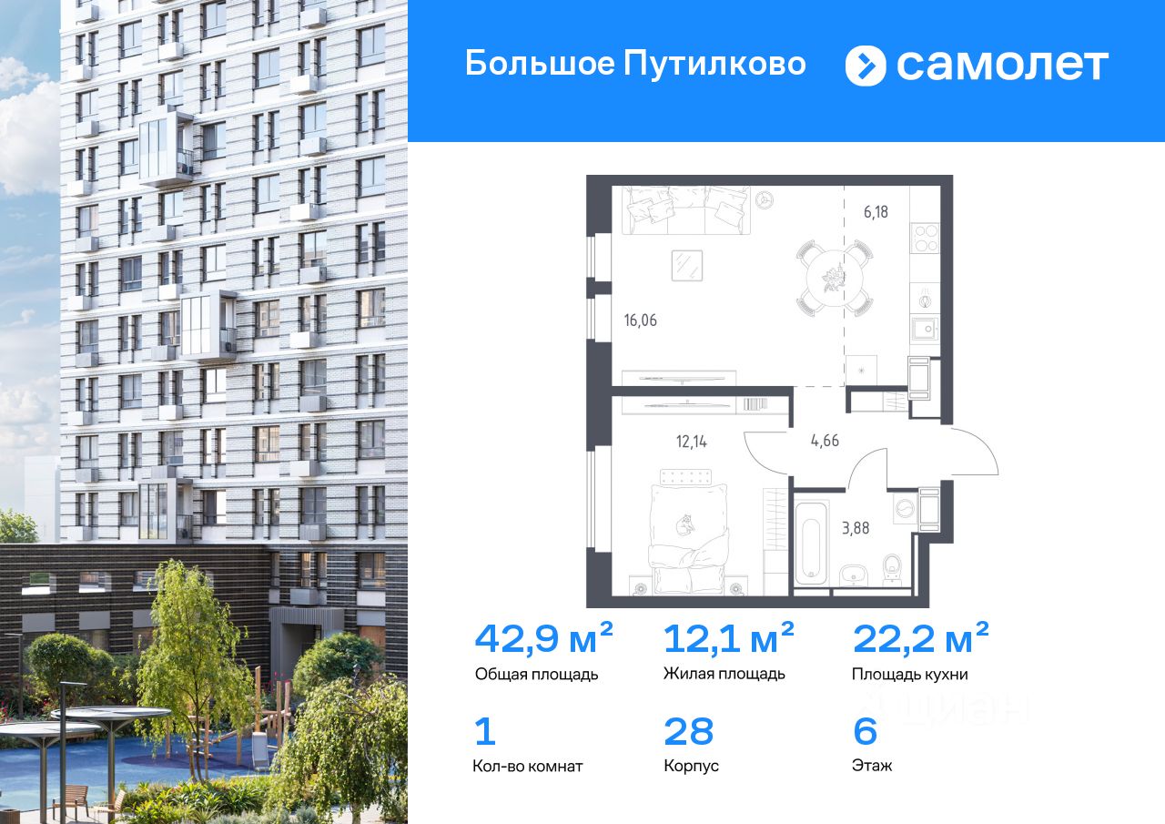 Строим кварталы для жизни с заботой о будущем. Предлагается 1-комнатная квартира комфорт-класса 42,92 кв.м в корпусе 28 на 6 этаже, в ЖК ''Большое Путилково'' Квартира без отделки. Доступность опции ''отделка'' и возможность комплектации мебелью и декором уточняйте у застройщика.