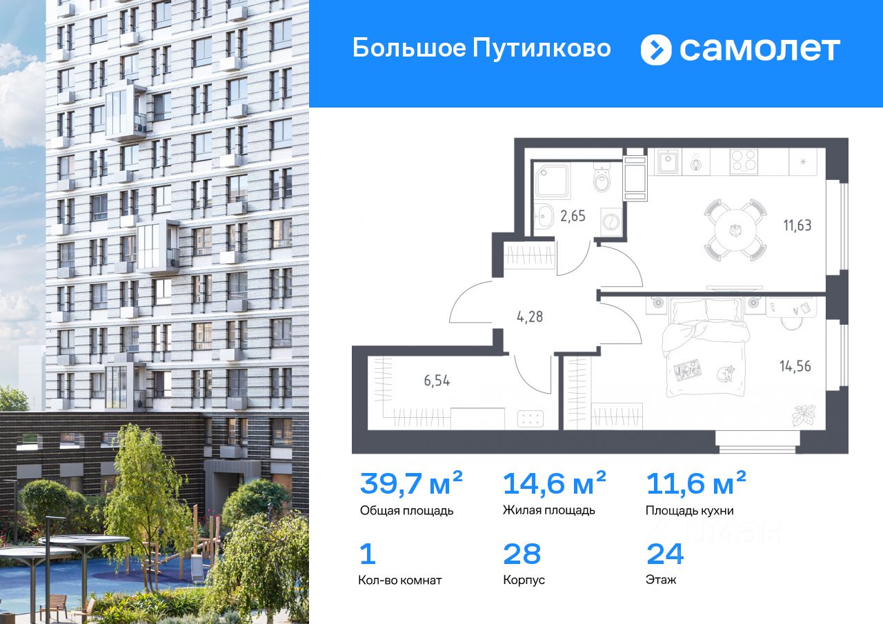 Строим кварталы для жизни с заботой о будущем. Предлагается 1-комнатная квартира комфорт-класса 39,66 кв.м в корпусе 28 на 24 этаже, в ЖК ''Большое Путилково'' Квартира с чистовой отделкой. Доступность дополнительных опций уточняйте у застройщика.