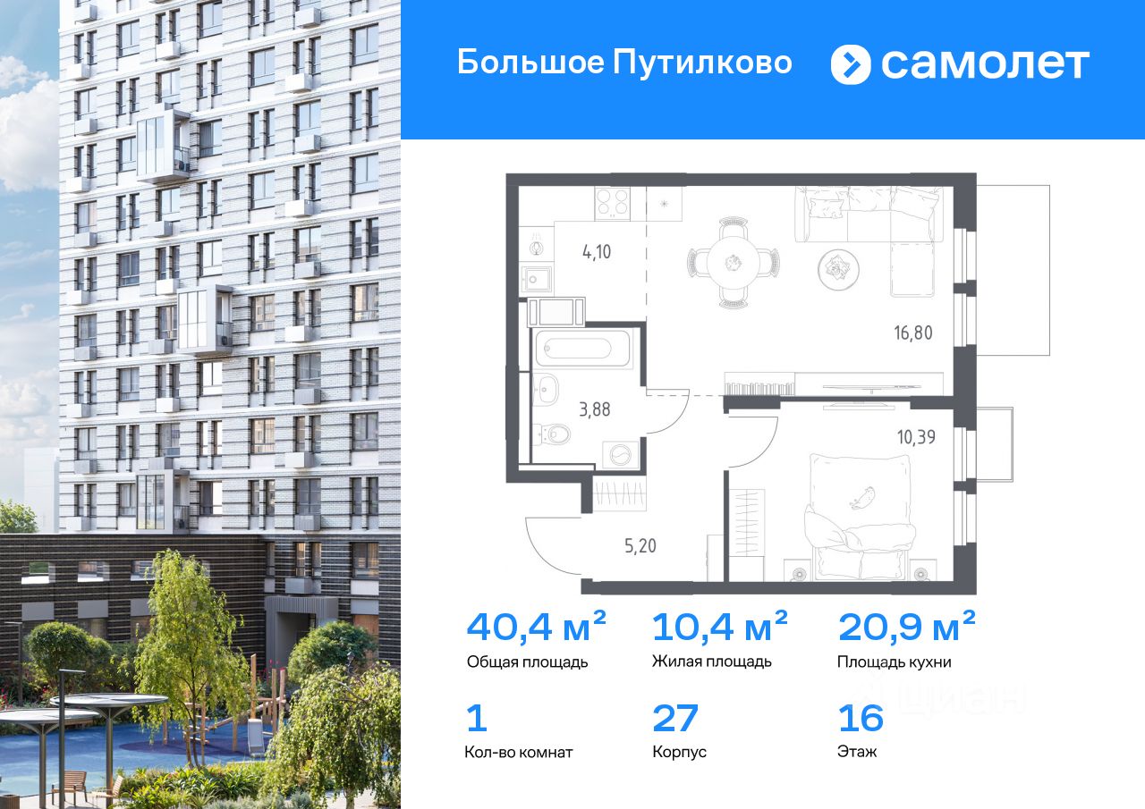 Строим кварталы для жизни с заботой о будущем. Предлагается 1-комнатная квартира комфорт-класса 40,37 кв.м в корпусе 27 на 16 этаже, в ЖК ''Большое Путилково'' Квартира с чистовой отделкой. Доступность дополнительных опций уточняйте у застройщика.