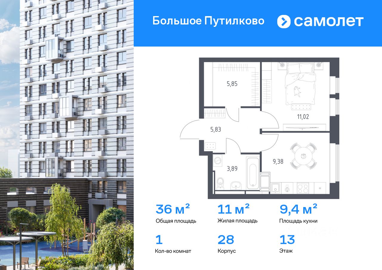 Строим кварталы для жизни с заботой о будущем. Предлагается 1-комнатная квартира комфорт-класса 35,97 кв.м в корпусе 28 на 13 этаже, в ЖК ''Большое Путилково'' Квартира с чистовой отделкой. Доступность дополнительных опций уточняйте у застройщика.