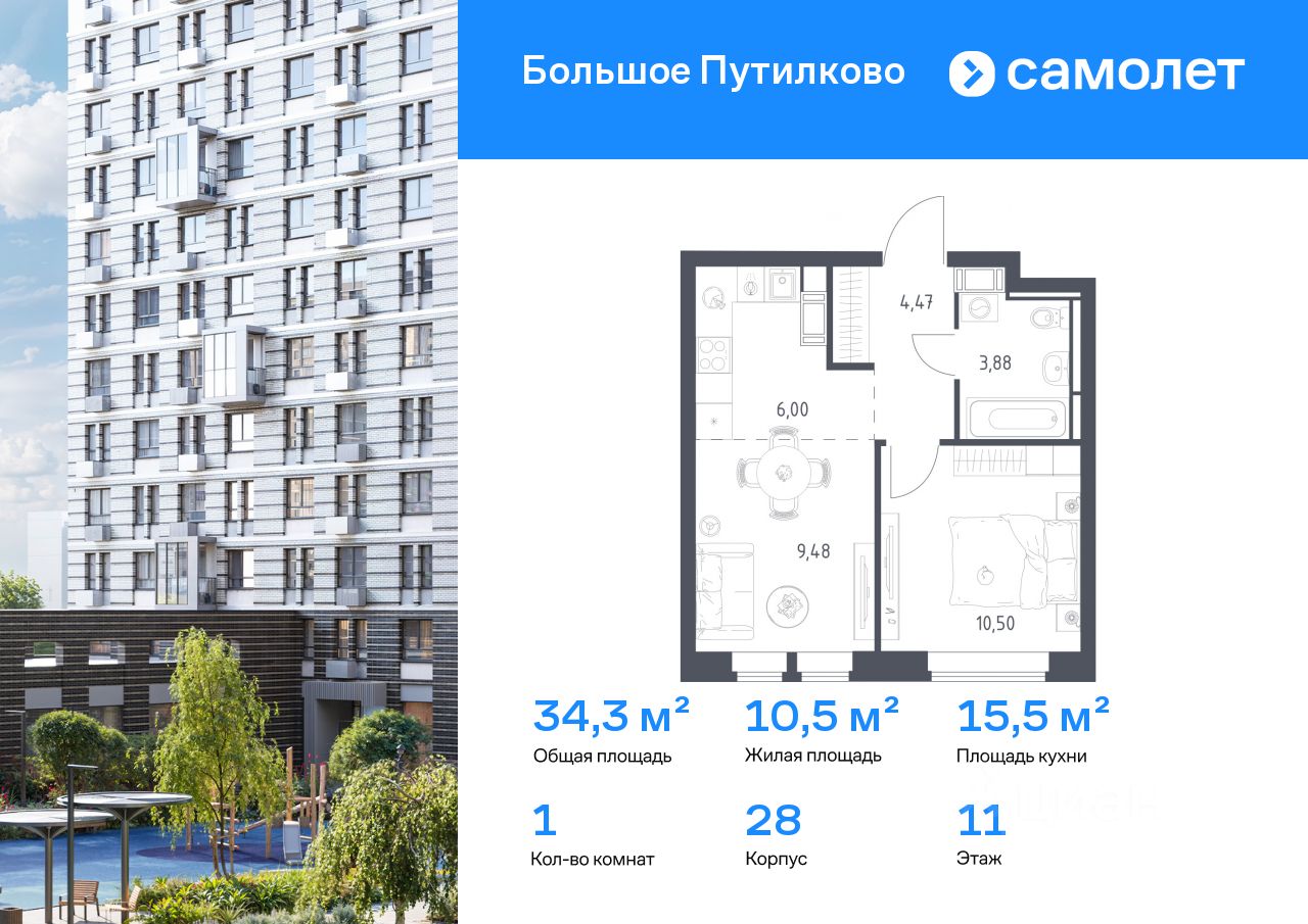 Строим кварталы для жизни с заботой о будущем. Предлагается 1-комнатная квартира комфорт-класса 34,33 кв.м в корпусе 28 на 11 этаже, в ЖК ''Большое Путилково'' Квартира с чистовой отделкой. Доступность дополнительных опций уточняйте у застройщика.