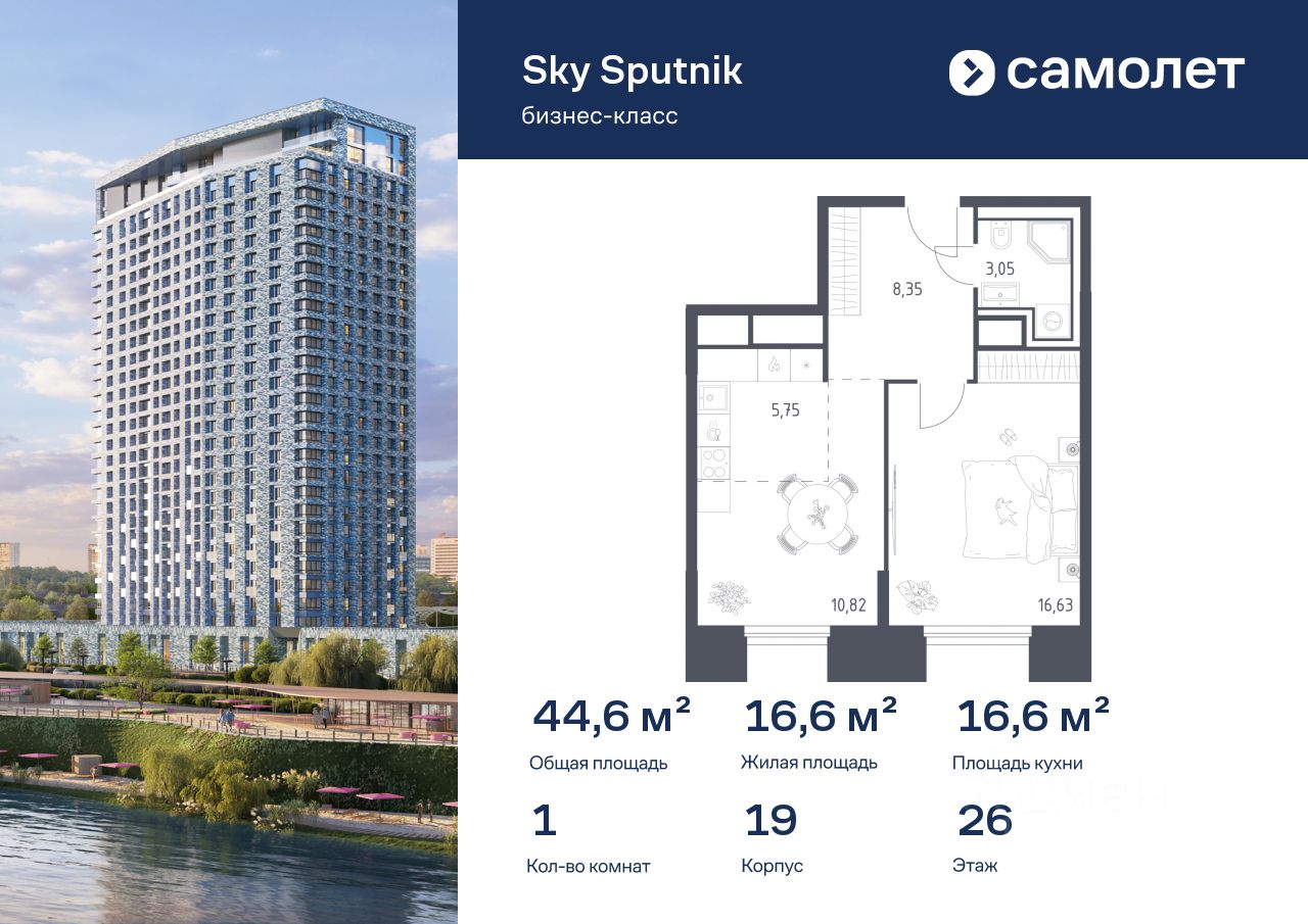 Строим кварталы для жизни с заботой о будущем. Предлагаются 1-комнатные апартаменты бизнес-класса 44,6 кв.м в корпусе 19 на 26 этаже, в Sky Sputnik Апартаменты без отделки. Доступность опции ''отделка'' и возможность комплектации мебелью и декором уточняйте у застройщика.