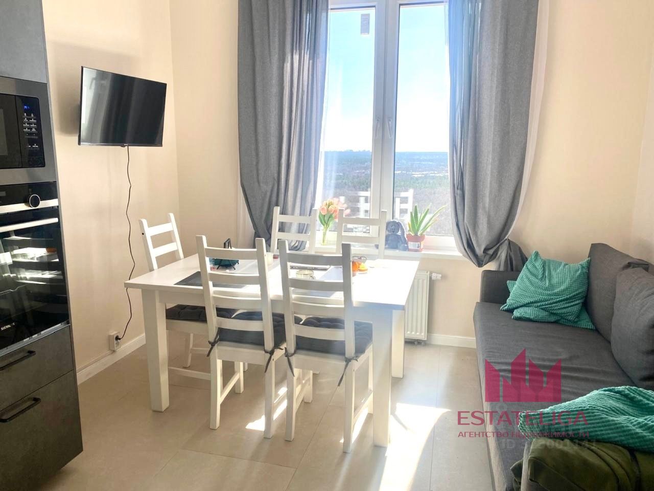 - На кухне есть небольшая зона отдыха. - Квартира очень светлая! - Вид на рощу и воду