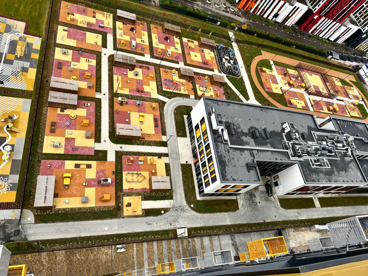 Семейный жилой комплекс с собственной строящейся развитой инфраструктурой: детский сад и начальная школа. Собственный двор-парк, детские и спортивные площадки. Продуманные зоны отдыха с ландшафтным дизайном. Охраняемая дворовая территория и круглосуточное видеонаблюдение. Дом с красивой входной группой, предусмотрена колясочная на первом этаже. В доме есть парковочные места в подземном паркинге. Рядом расположена уже действующая школа. Придомовая территория облагорожена, с детскими и спортивными площадками.